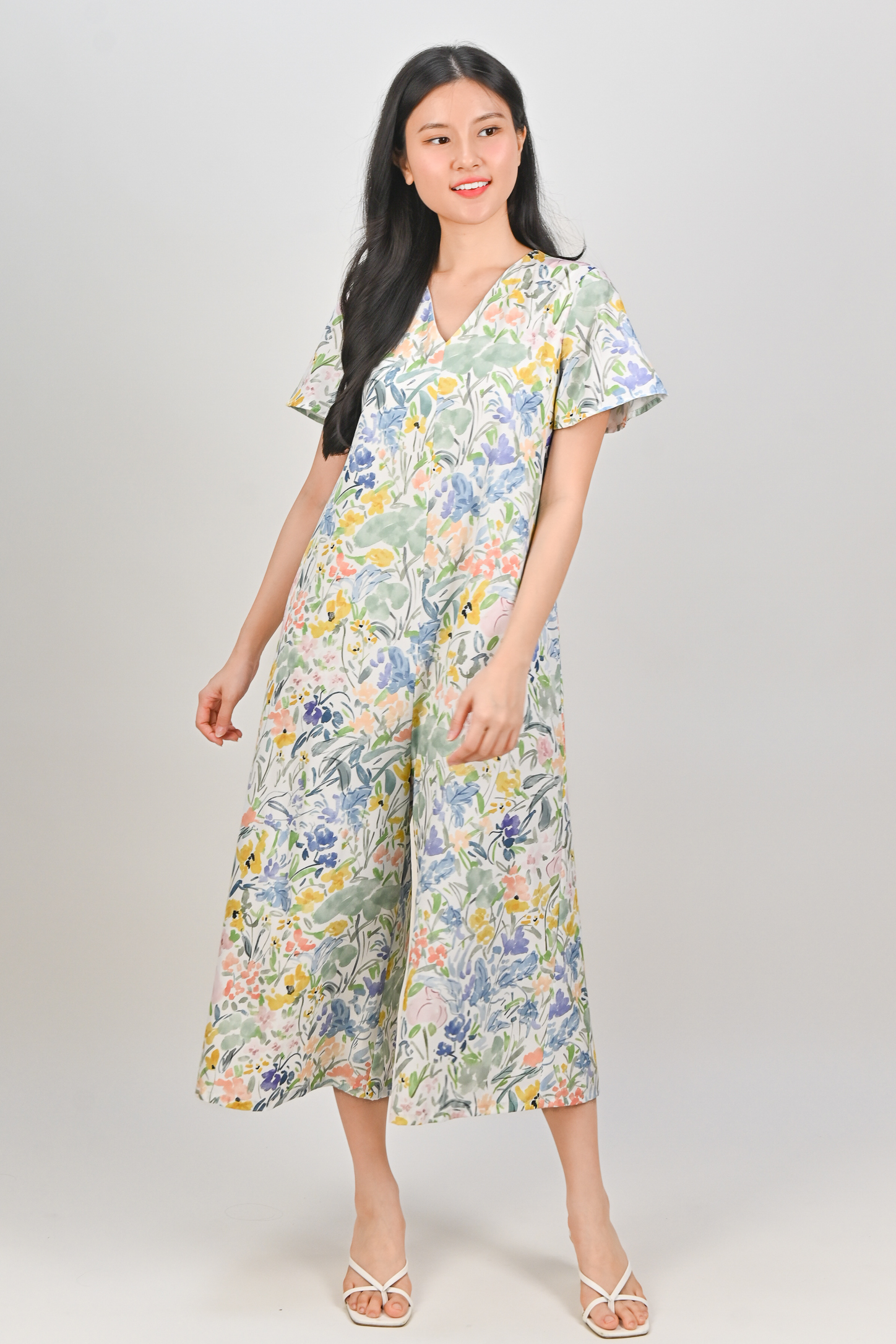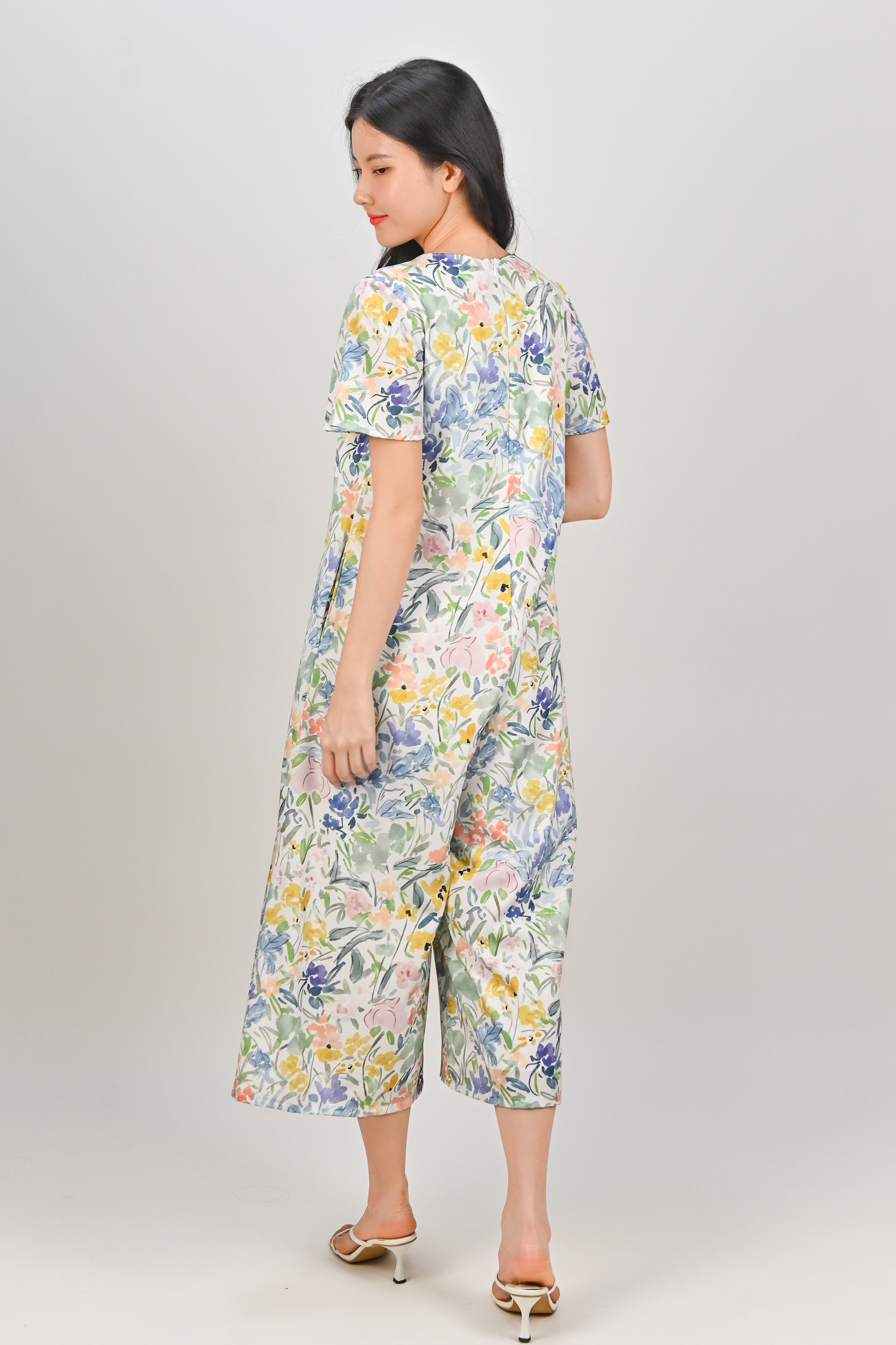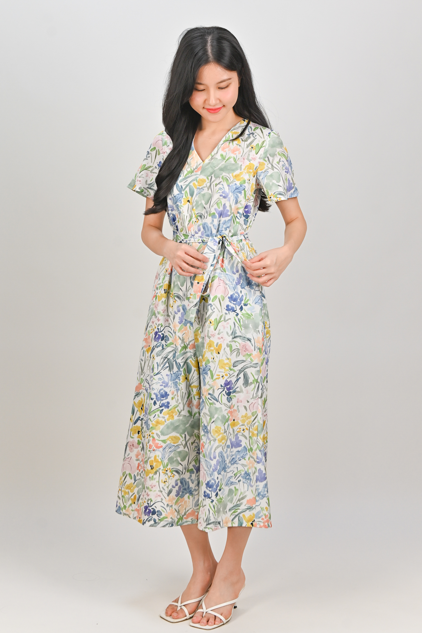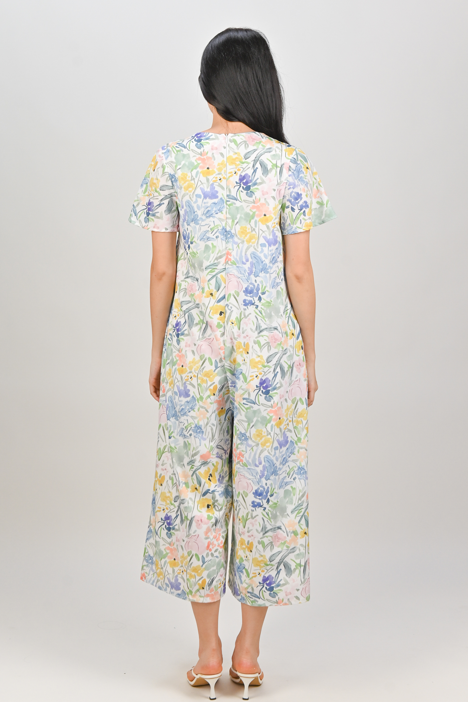 VIONNA WATERCOLOUR FLORAL SLEEVED JUMPSUIT