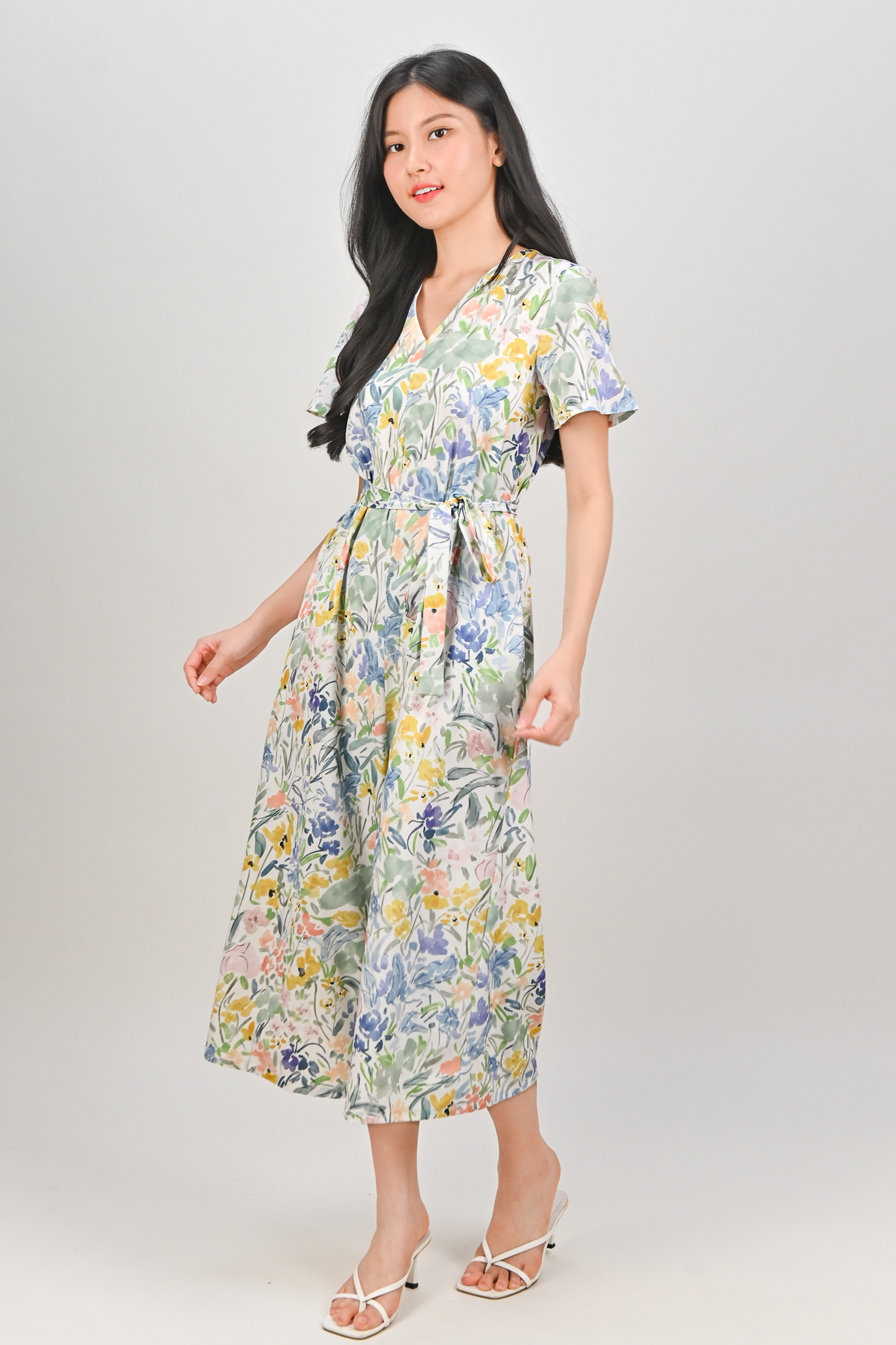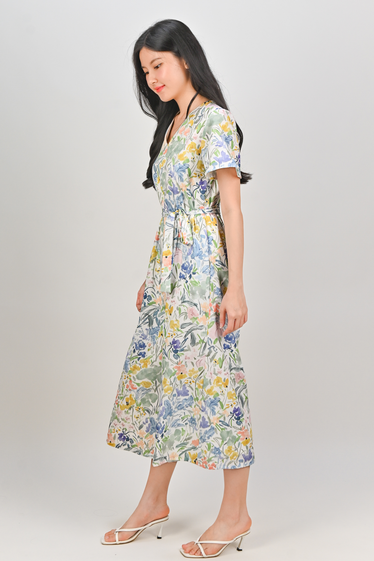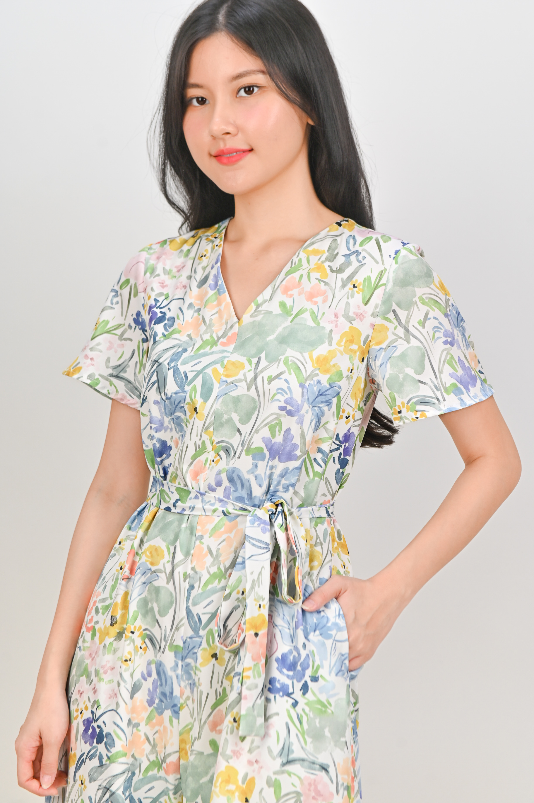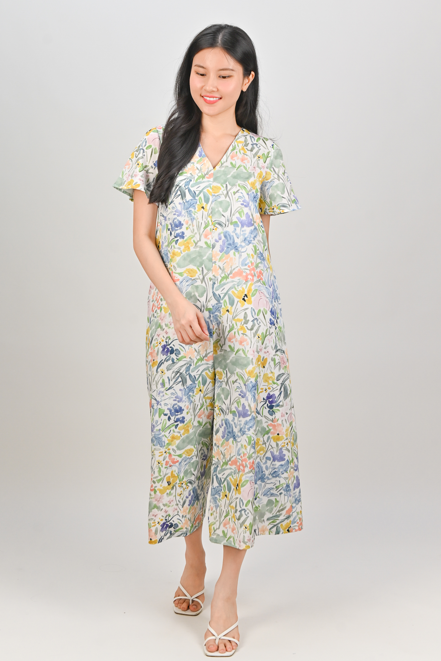 VIONNA WATERCOLOUR FLORAL SLEEVED JUMPSUIT