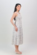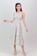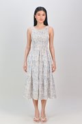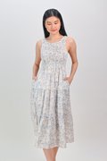 WAVERLY SLEEVELESS SMOCKED DRESS IN BLUE FLORAL