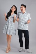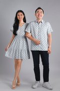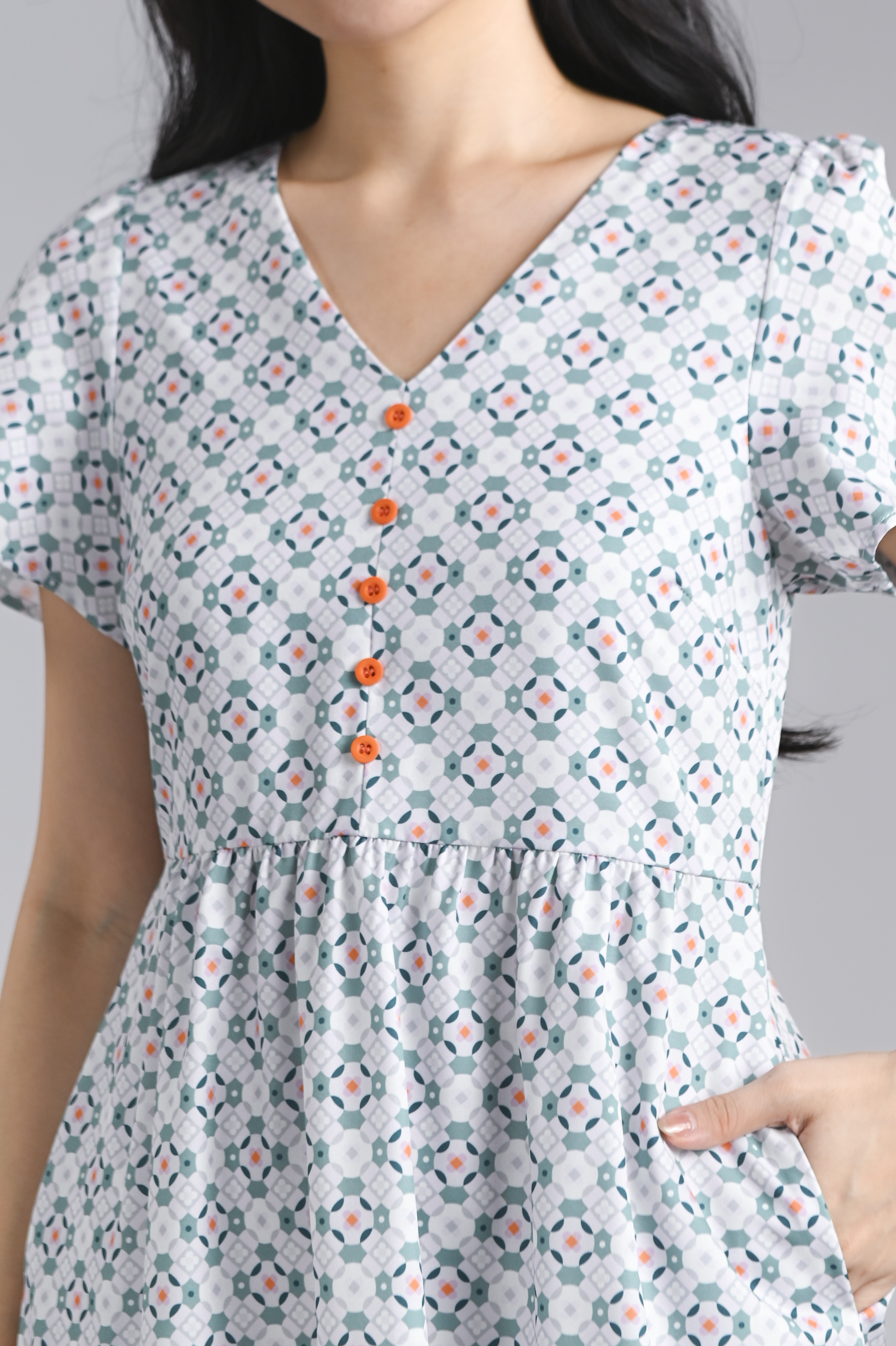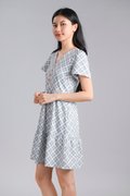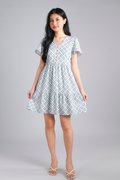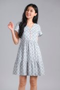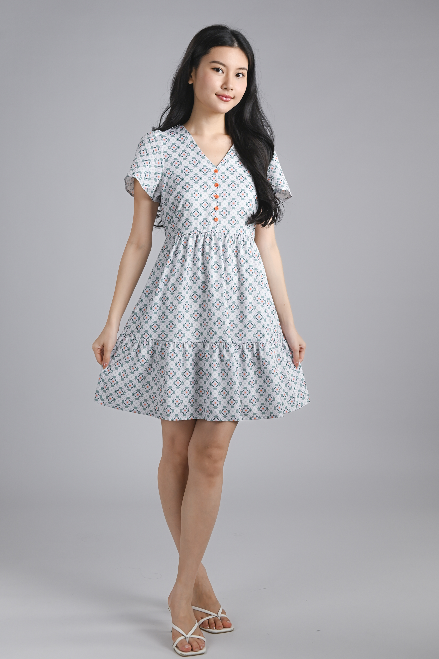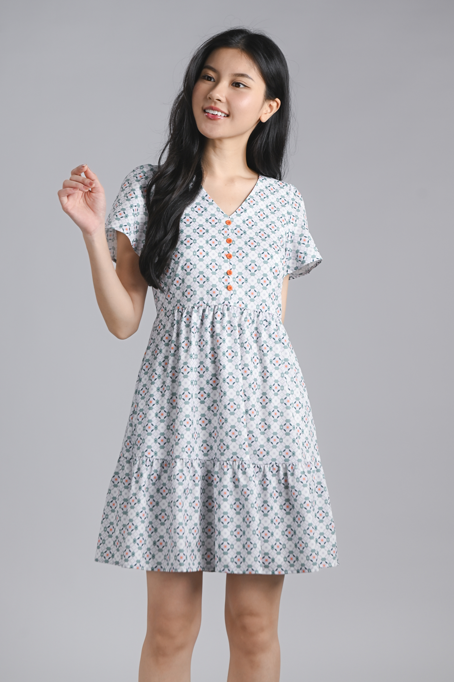 WHITE JADE SLEEVED BUTTON FLOUNCE DRESS