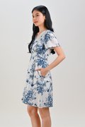 WINSLET SLEEVED SHORT HIGH-WAIST DRESS IN BLUE TOILE