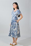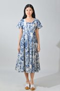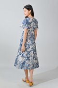 WISTERIA PORCELAIN SLEEVED PANELLED MIDI DRESS