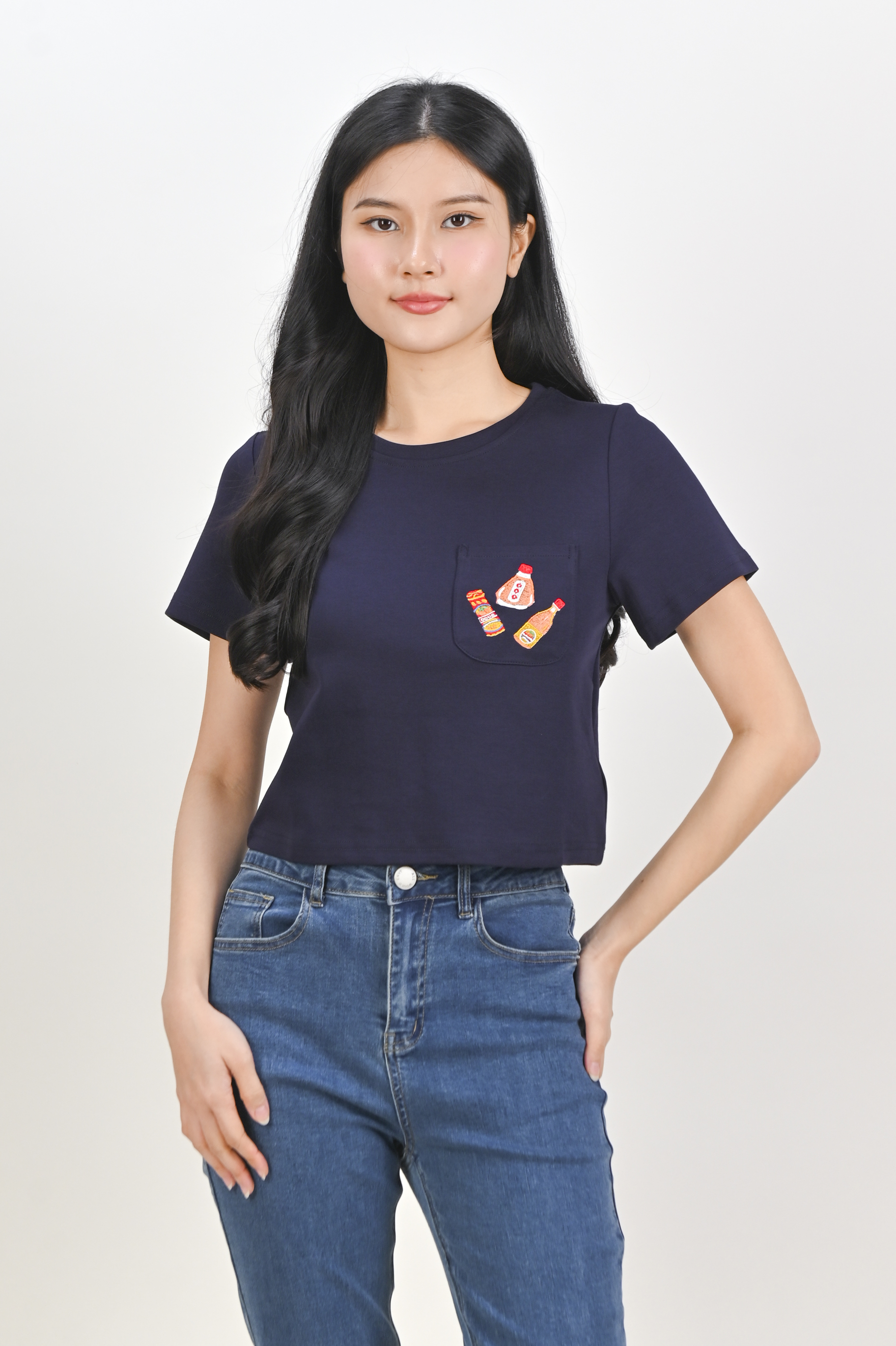 - Functional single chest pocket with embroidery