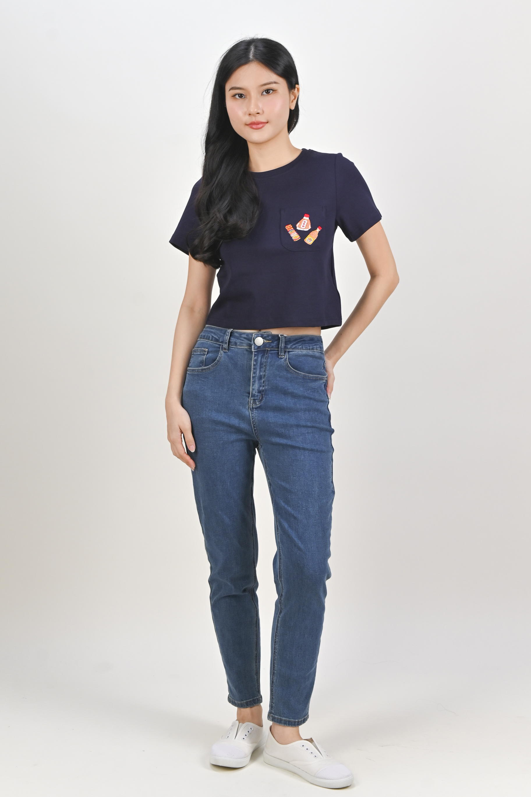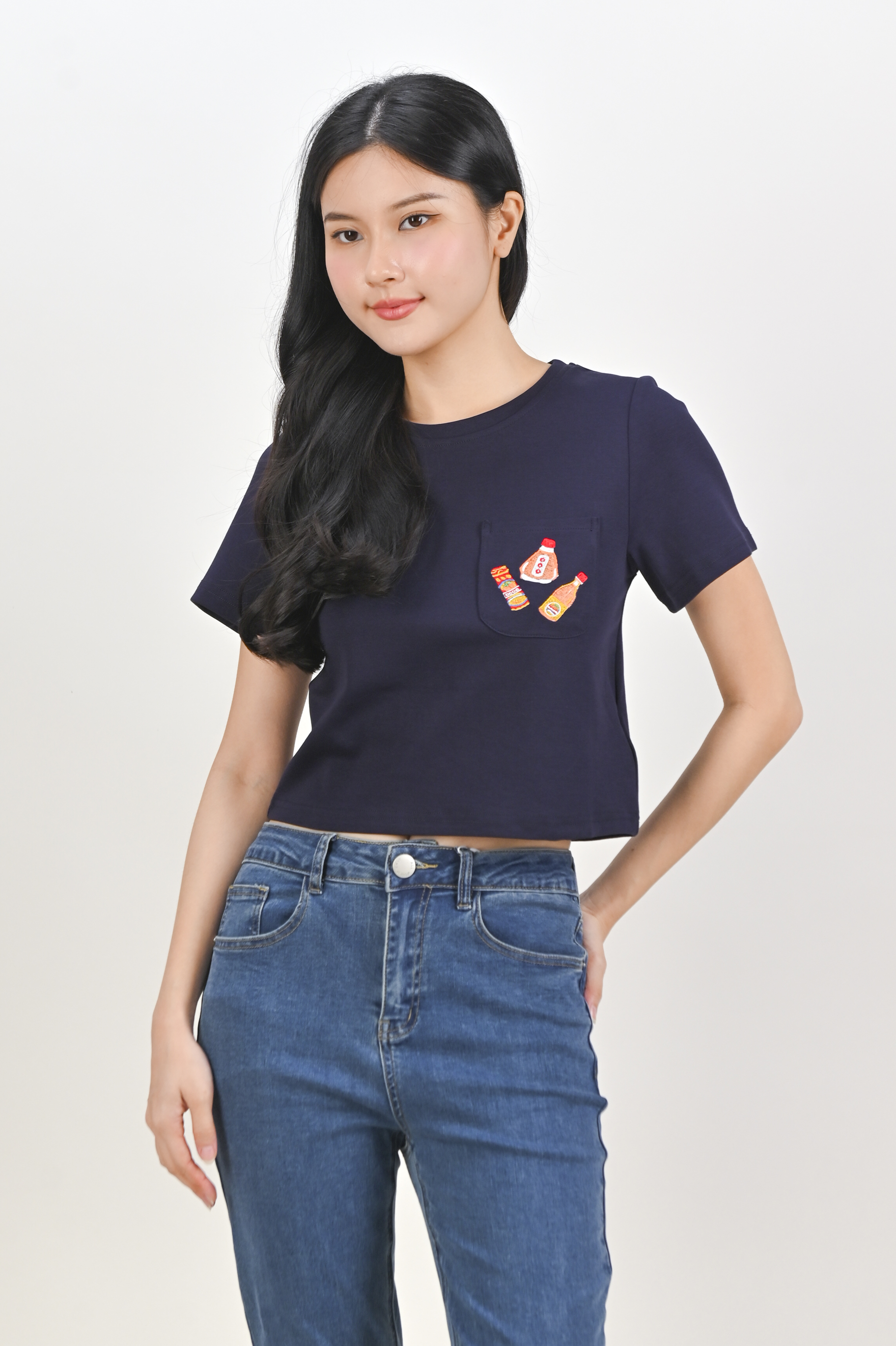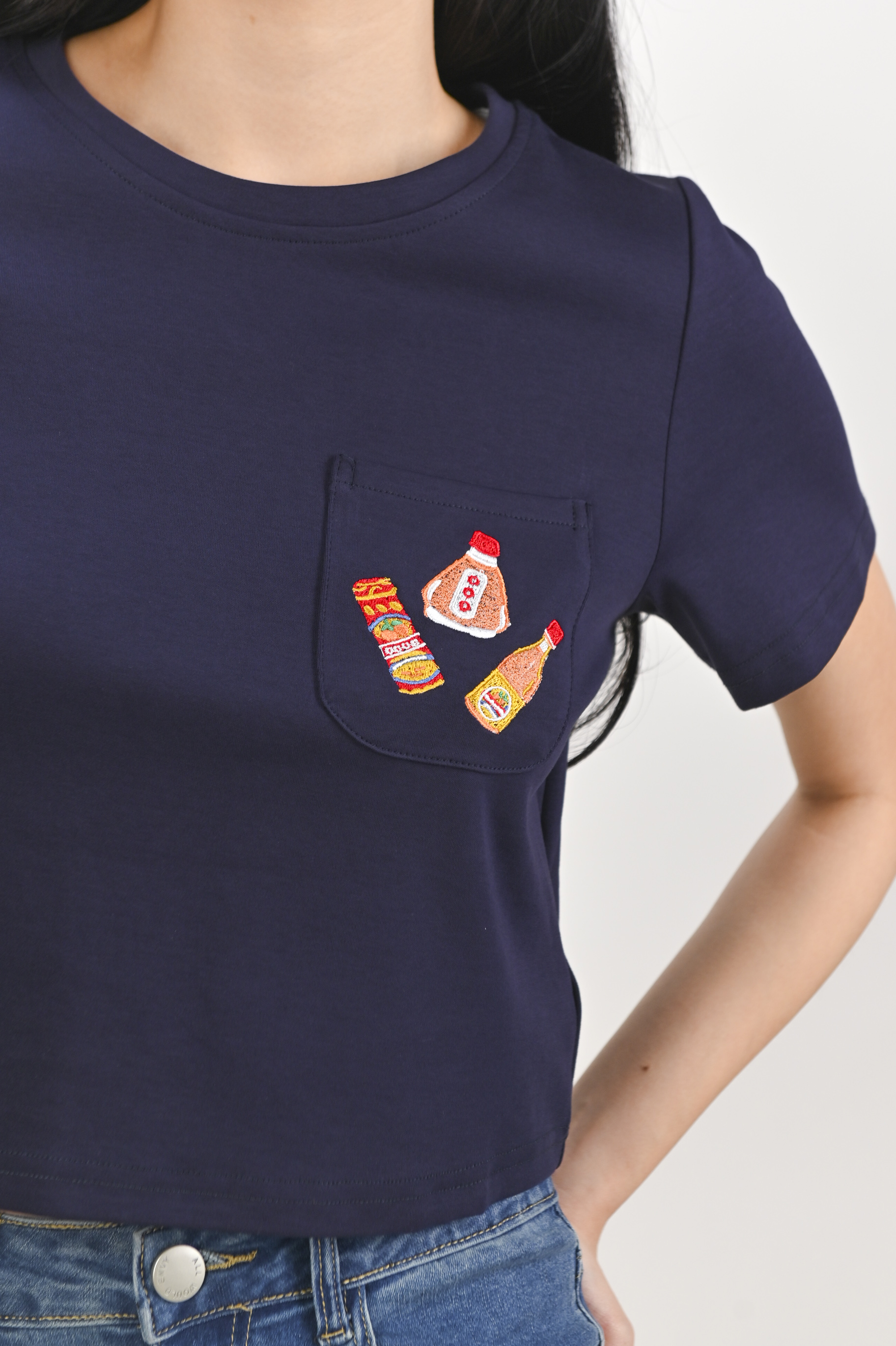 WONDER POTIONS NAVY EMB. CROPPED TEE