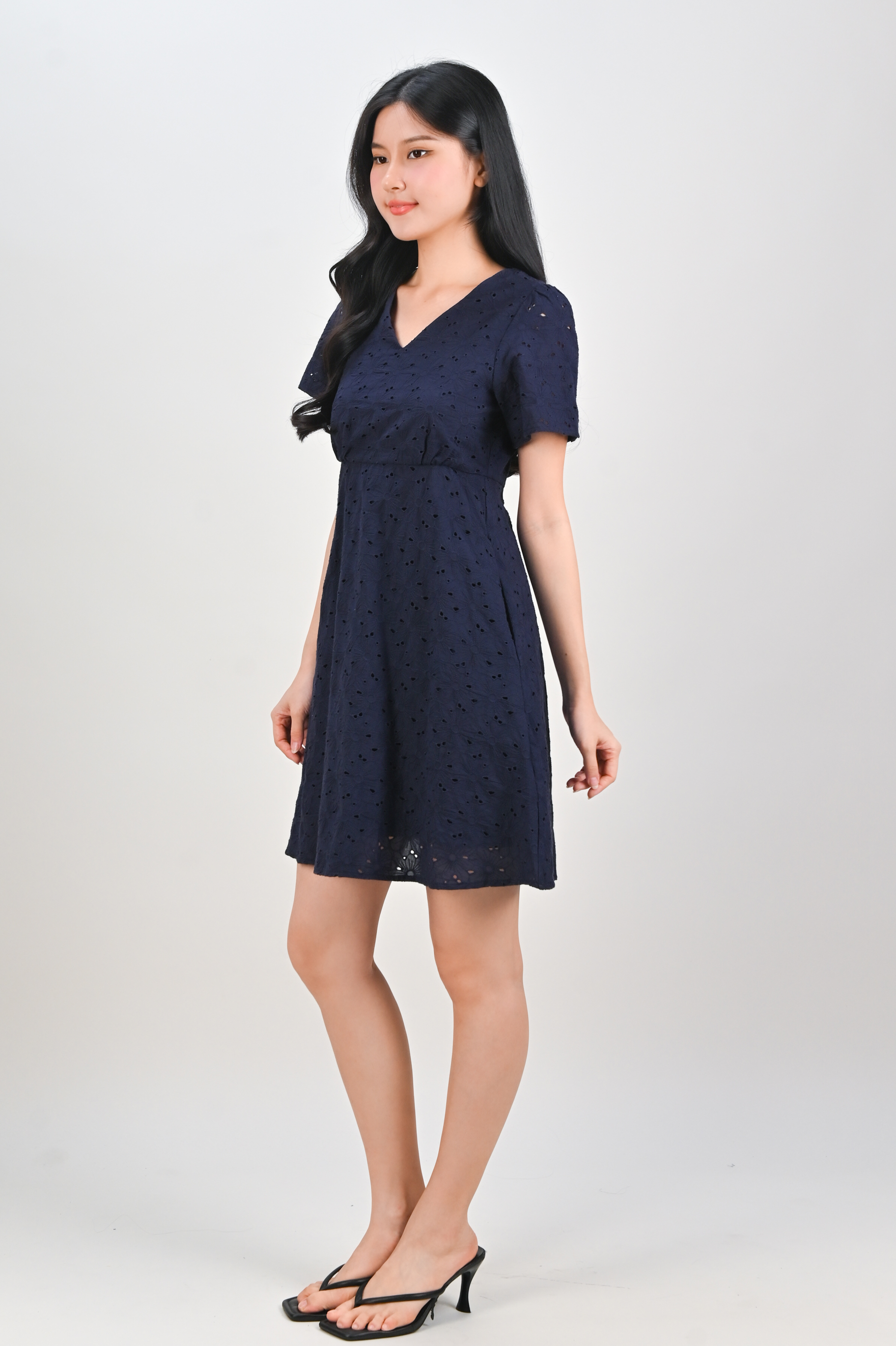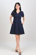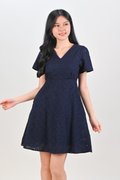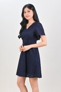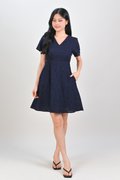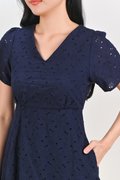 WYUNA EYELET HIGH-WAIST SHORT DRESS IN NAVY