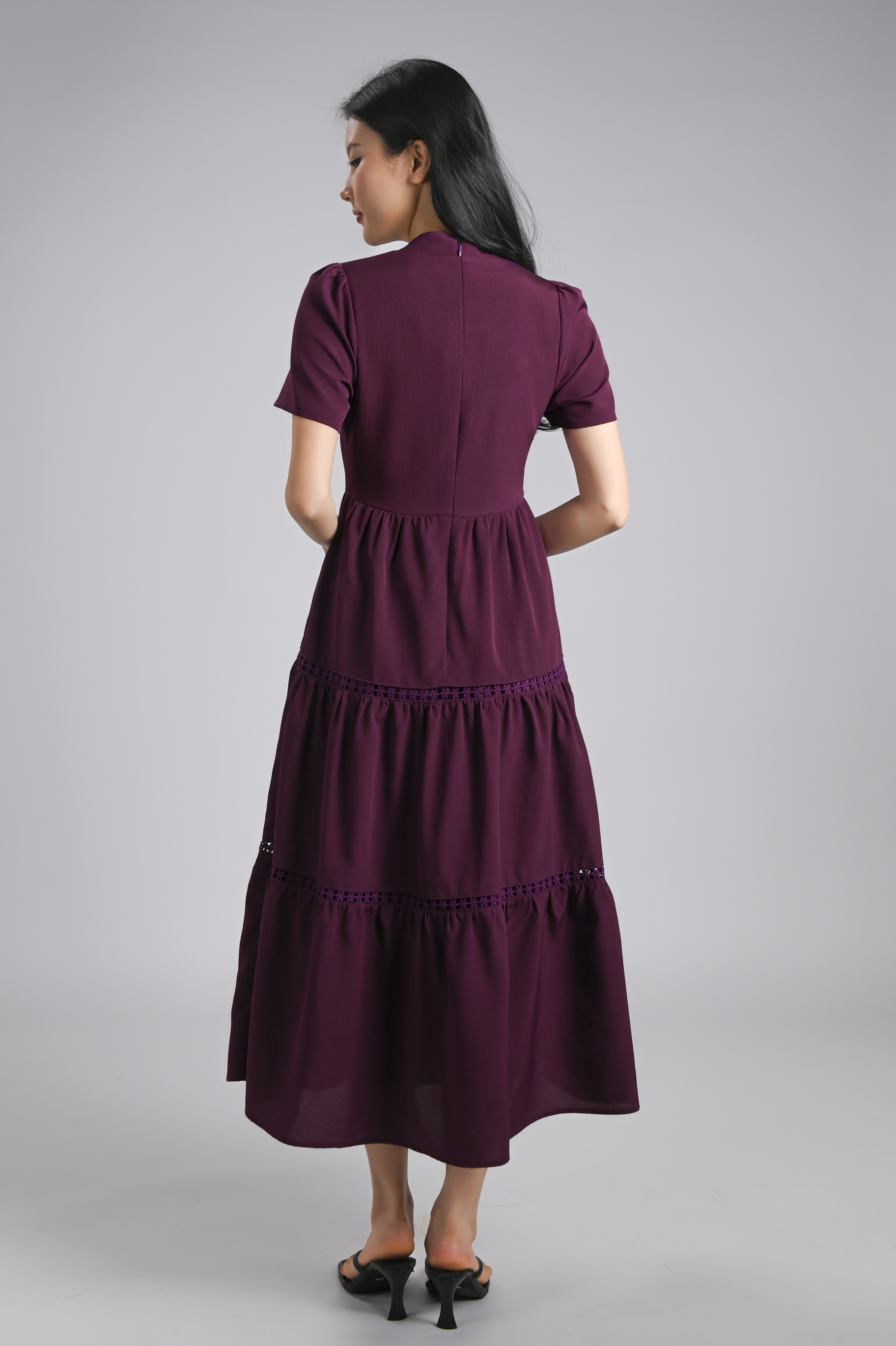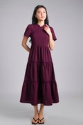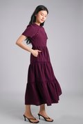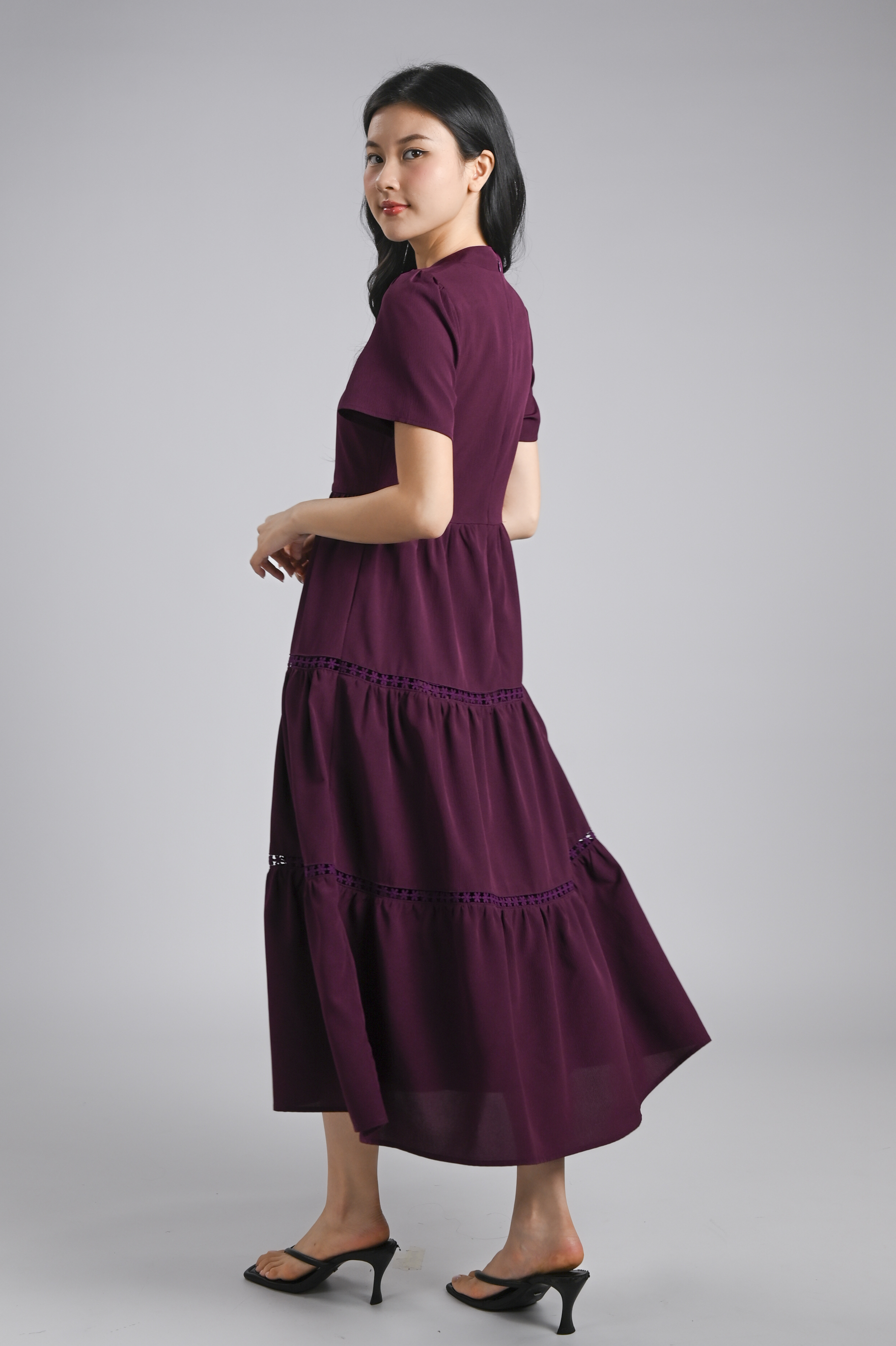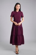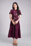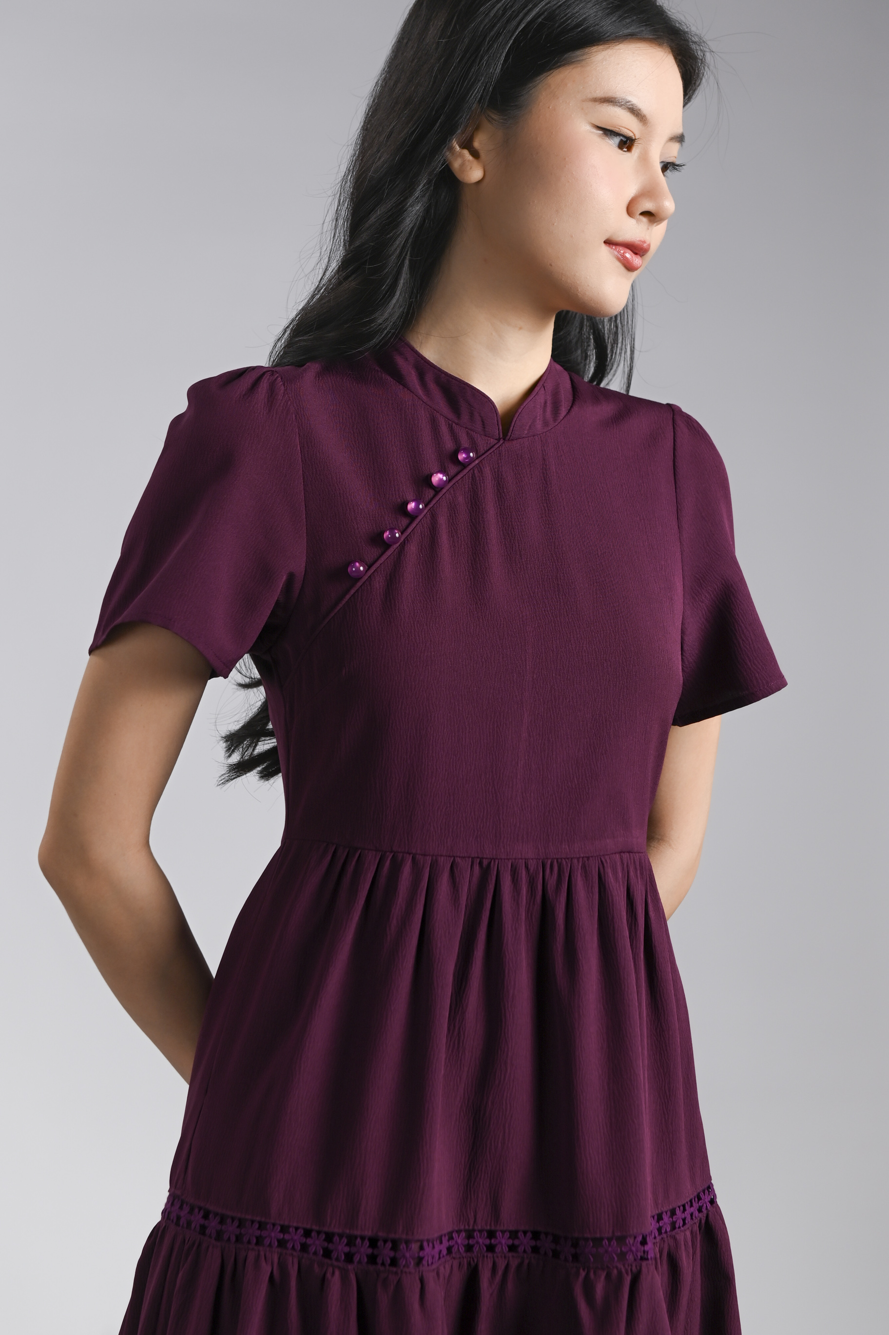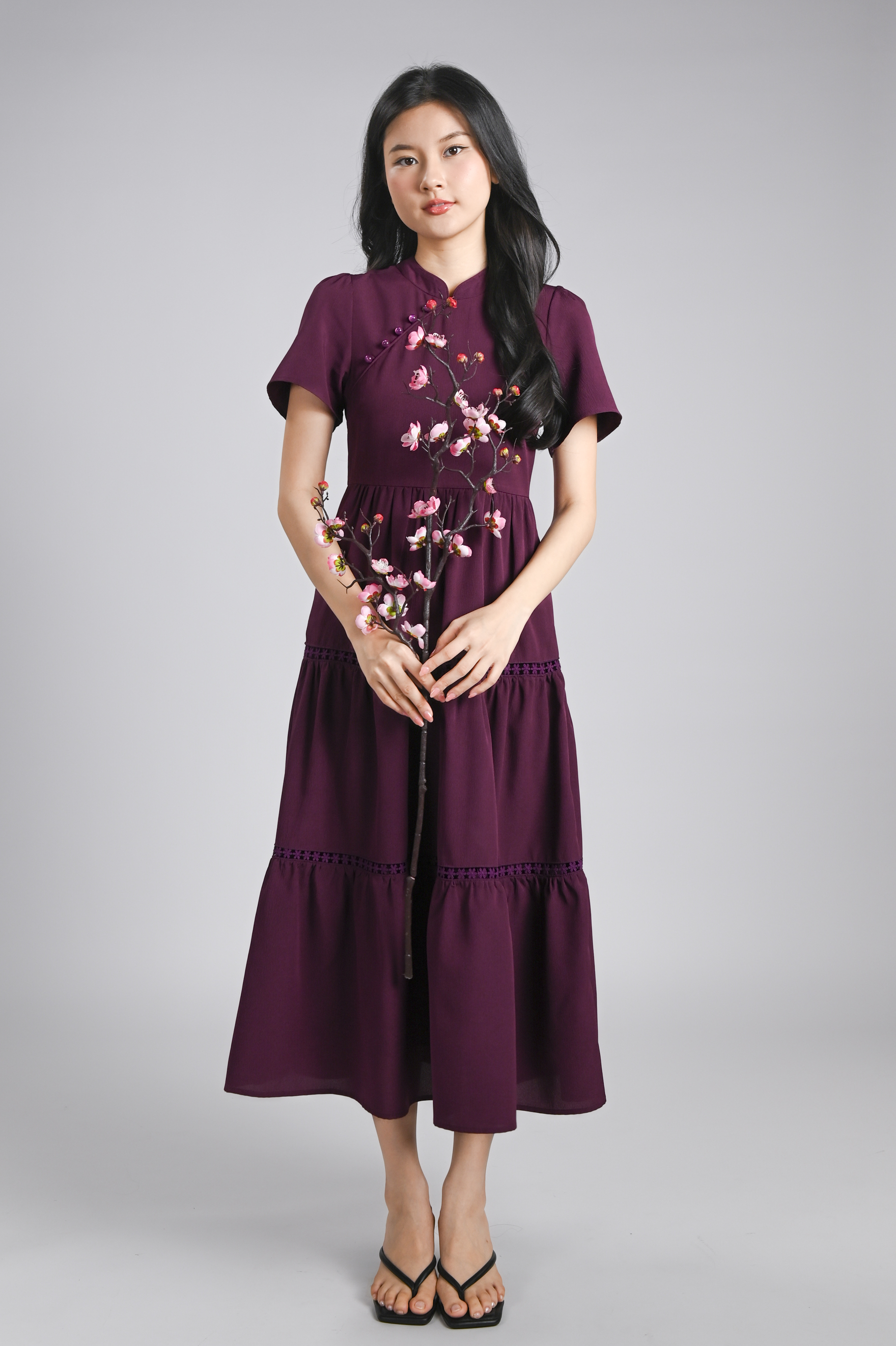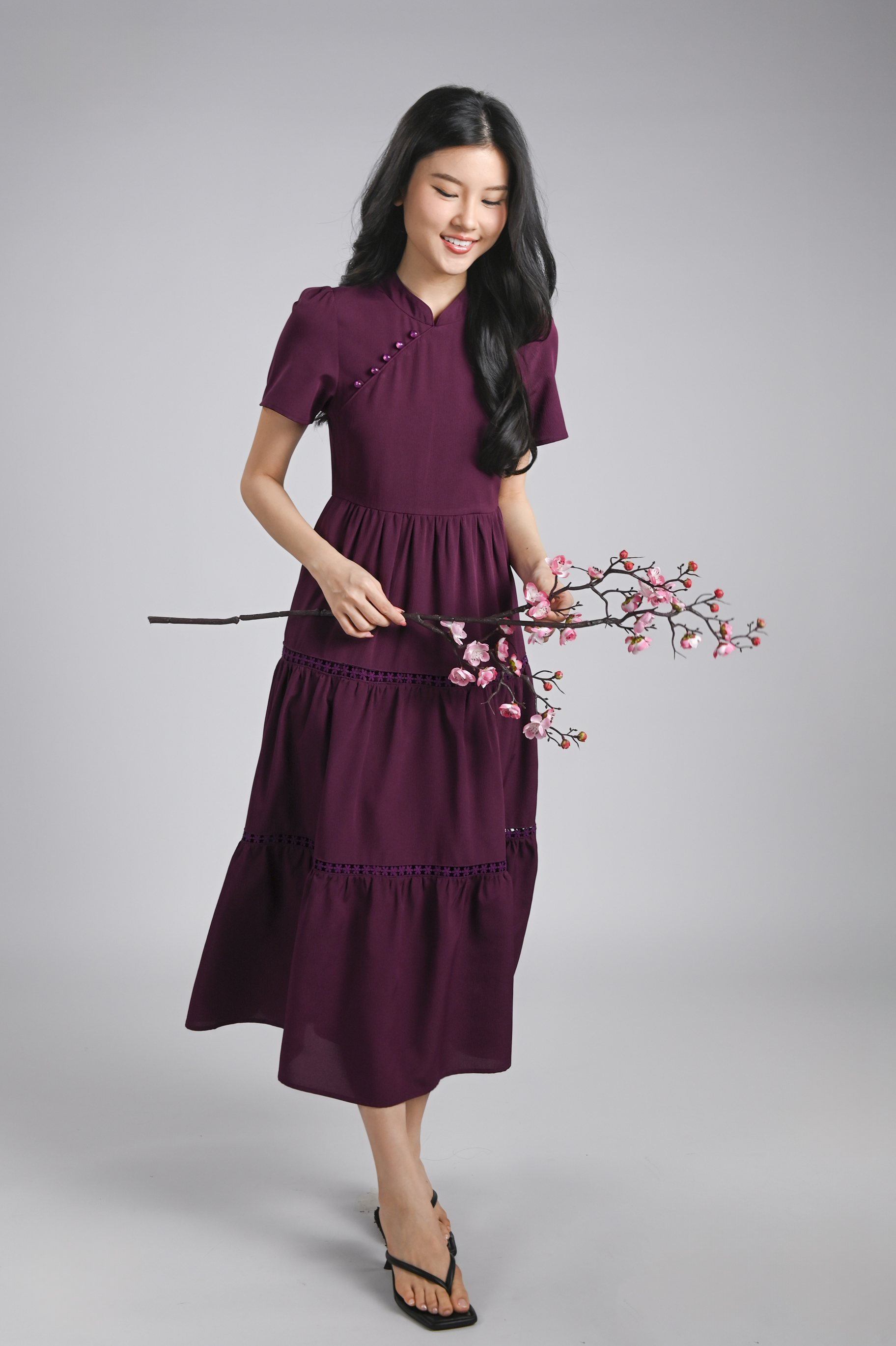 XIAOYANZI CHEONGSAM TIERED MIDAXI DRESS IN MAROON