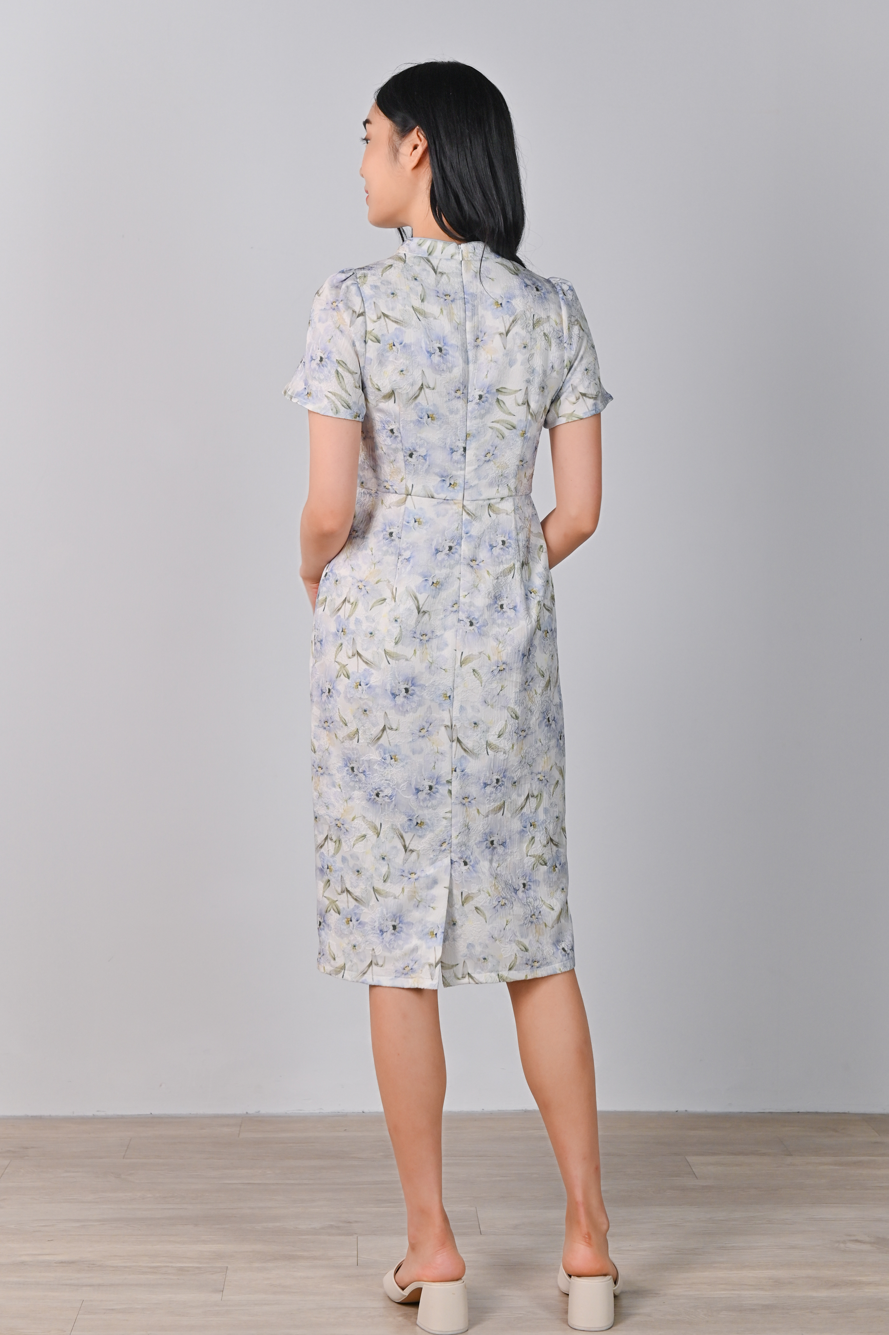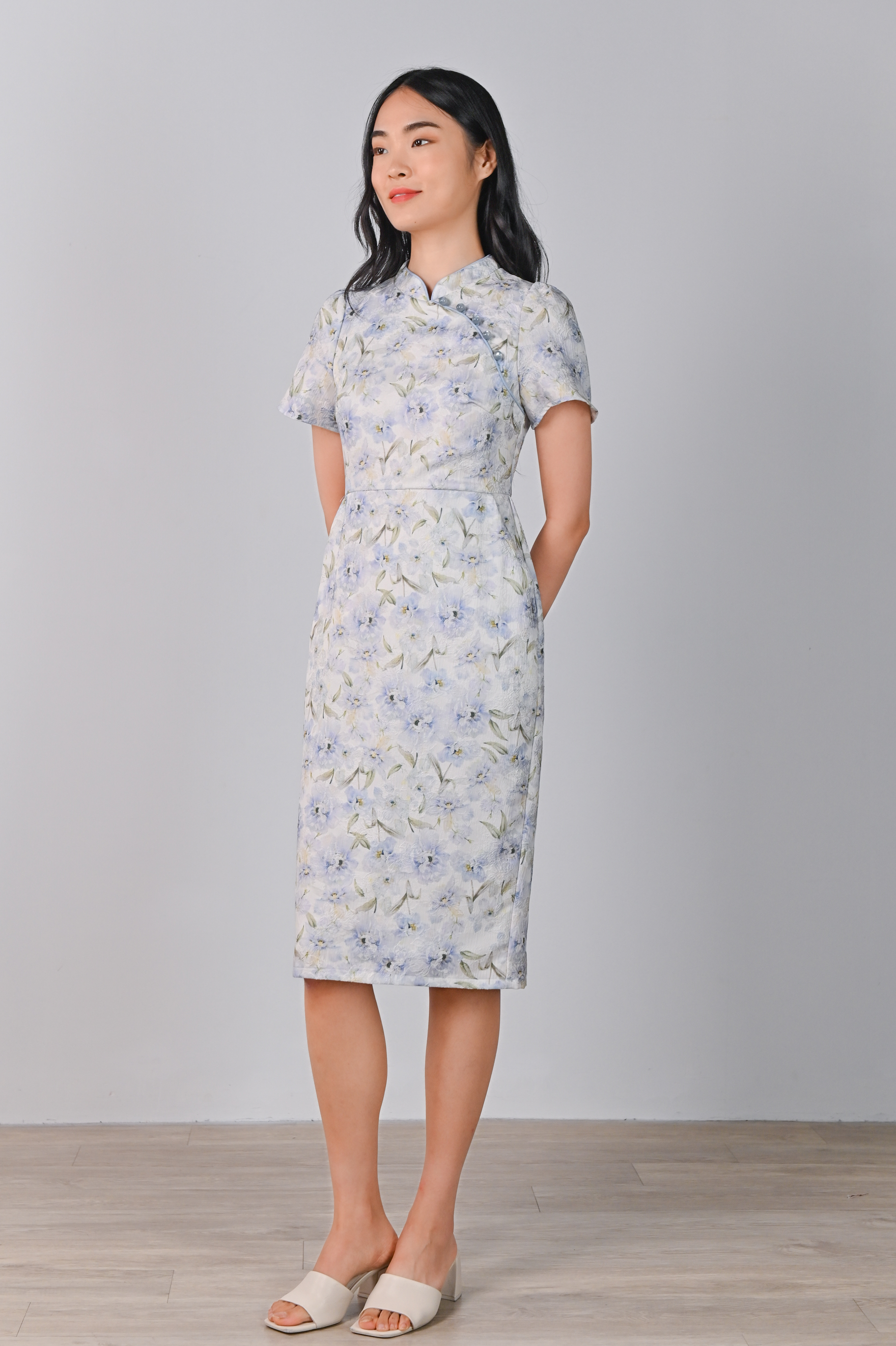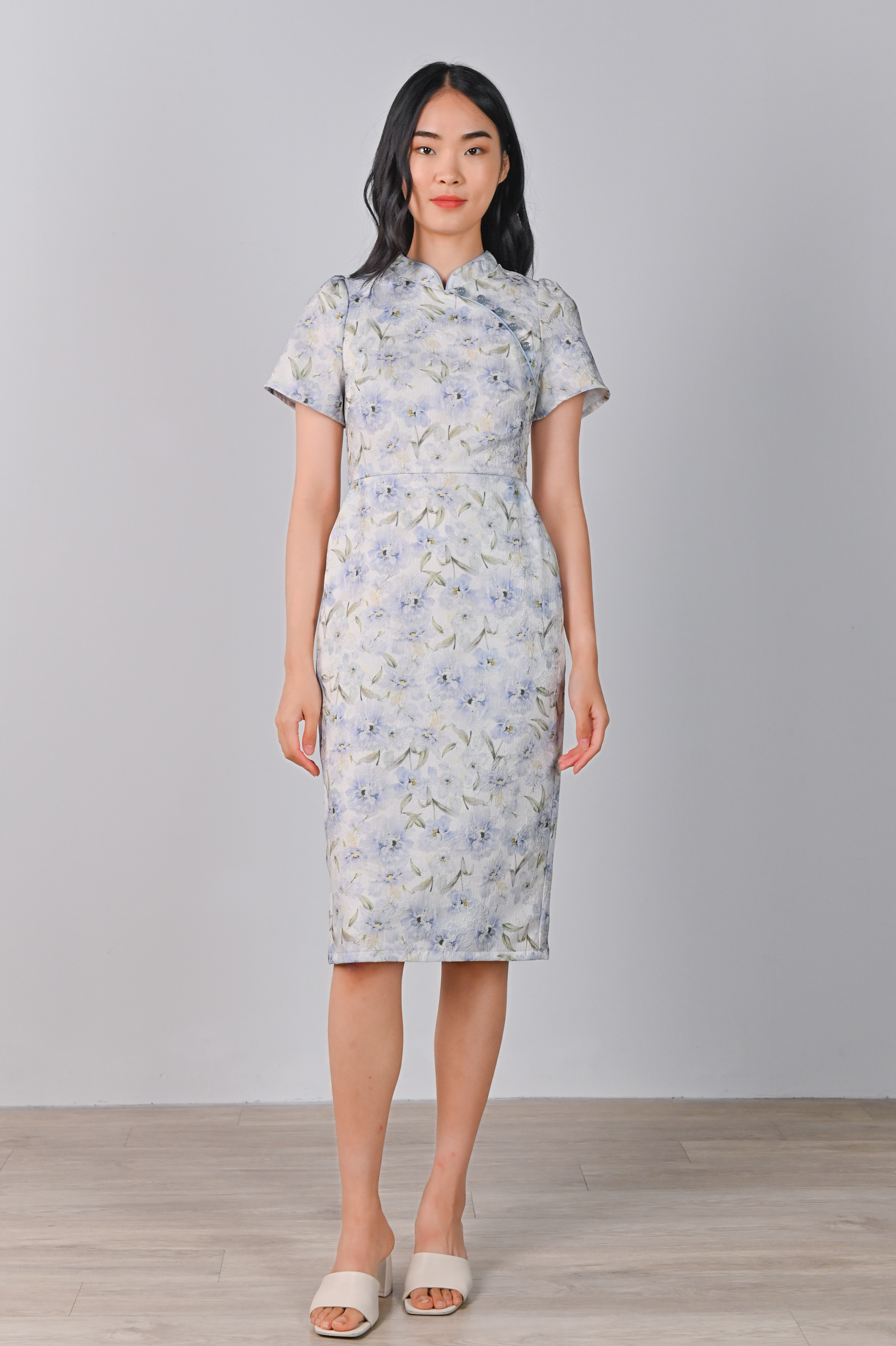 YINUO EMBOSSED CHEONGSAM IN BLUE