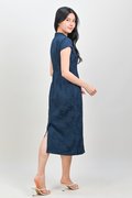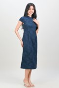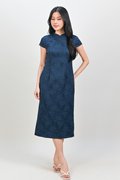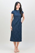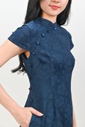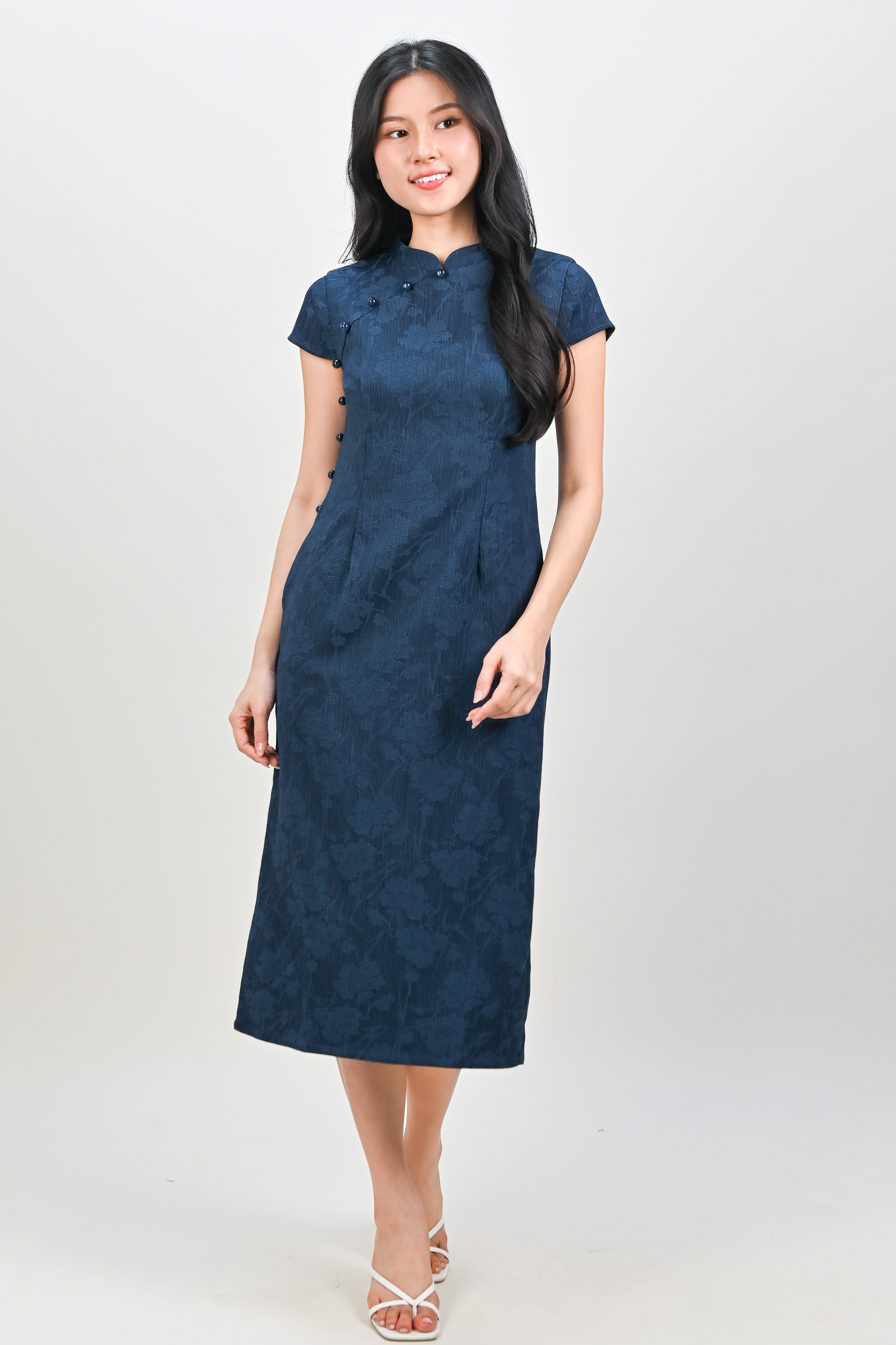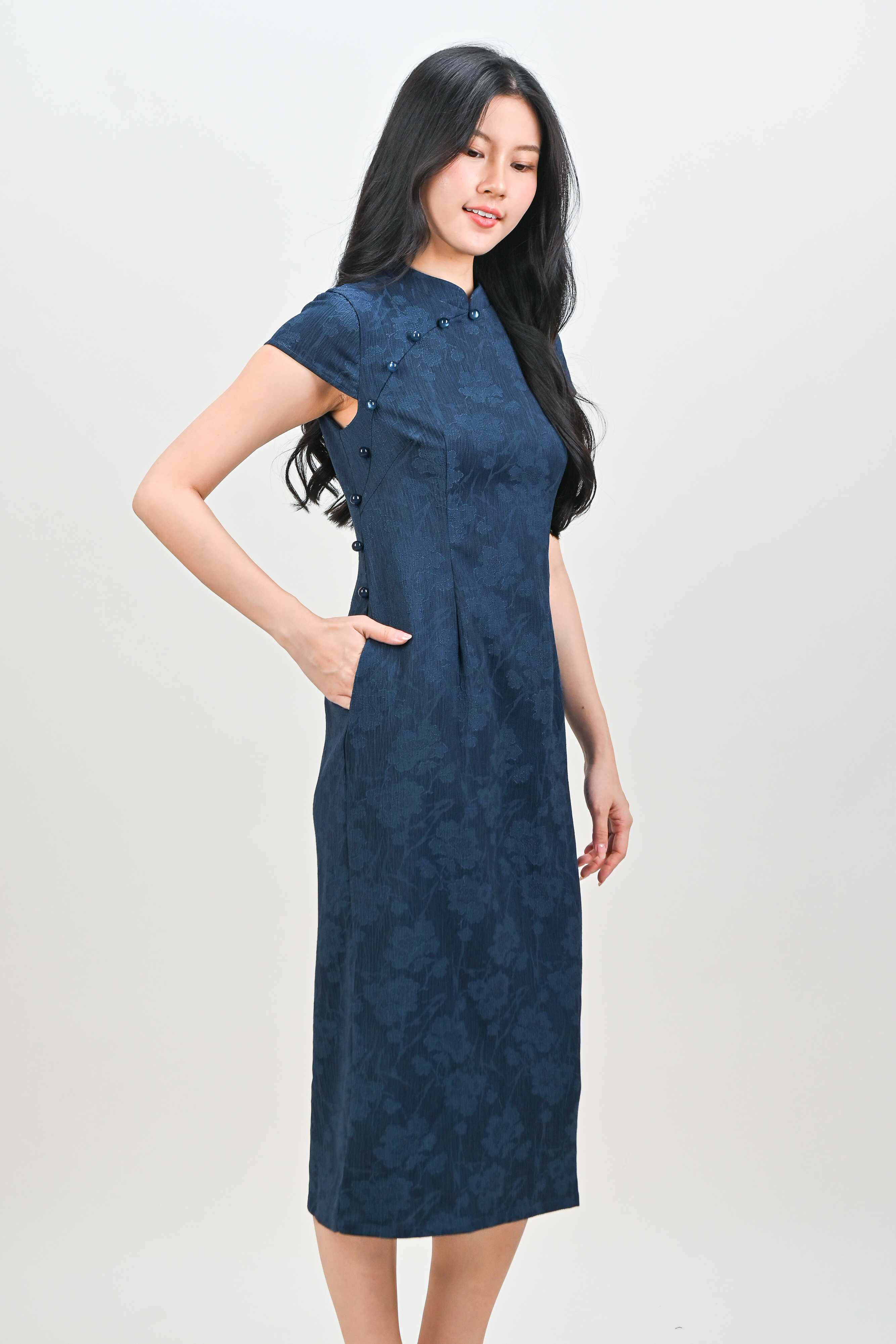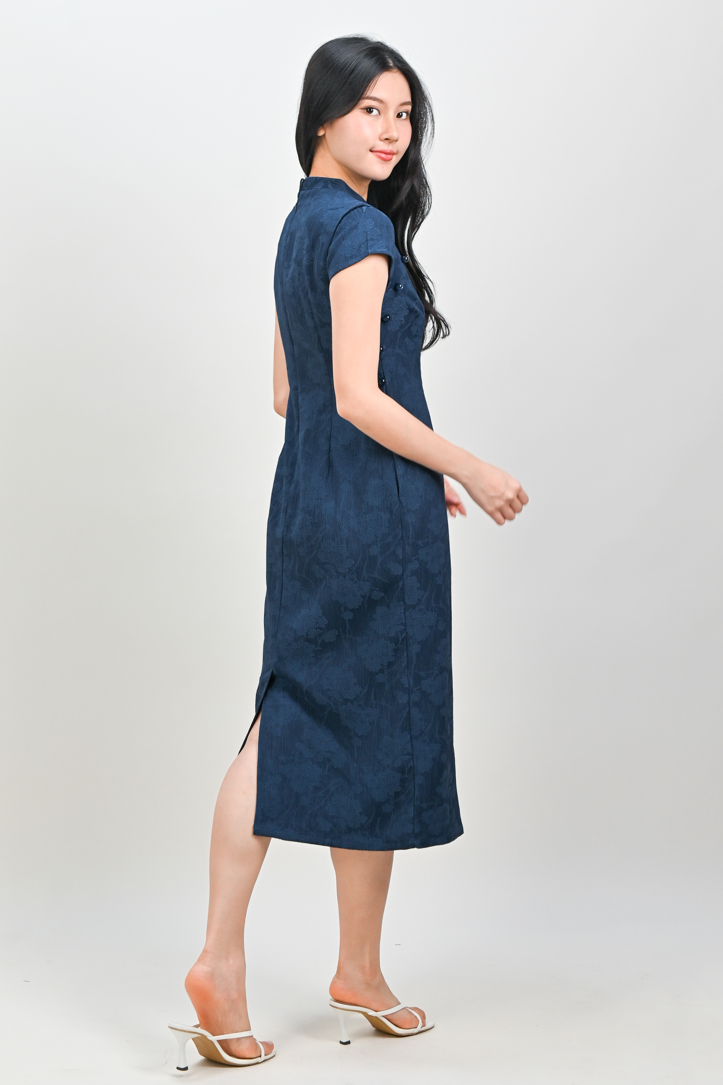 YUEYUE DARK BLUE CAP-SLEEVED CHEONGSAM DRESS