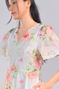 YUNYUN PINK EYELET FLORAL SLEEVED DRESS