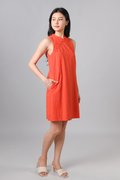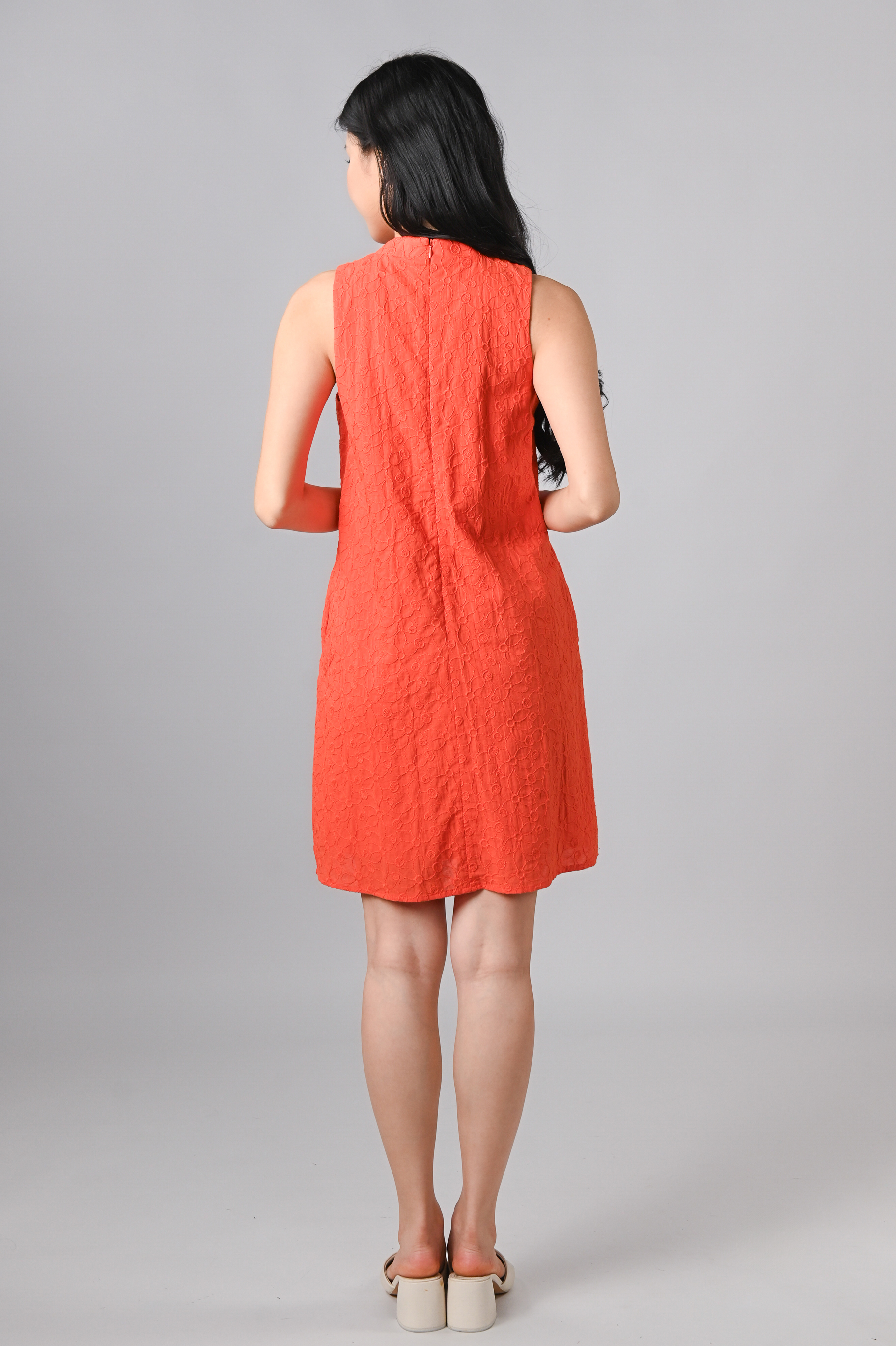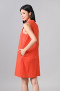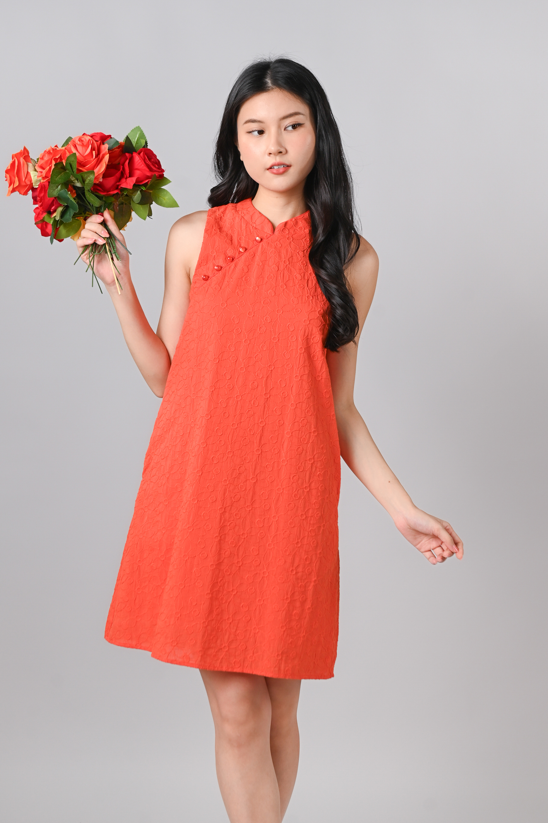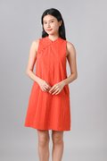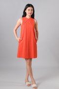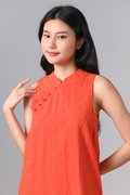 YUZHE ORANGE EMB. SLEEVELESS CHEONGSAM DRESS
