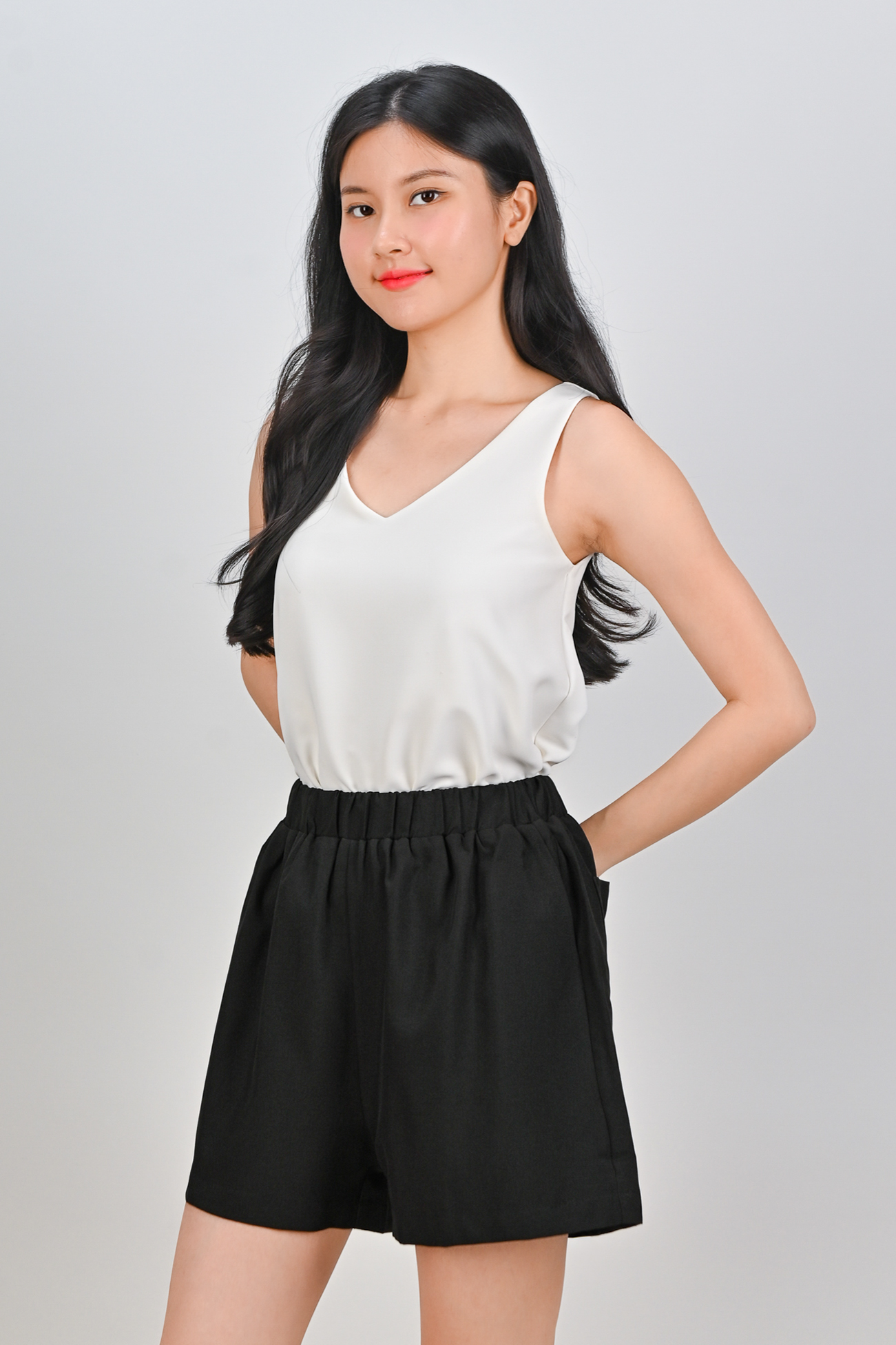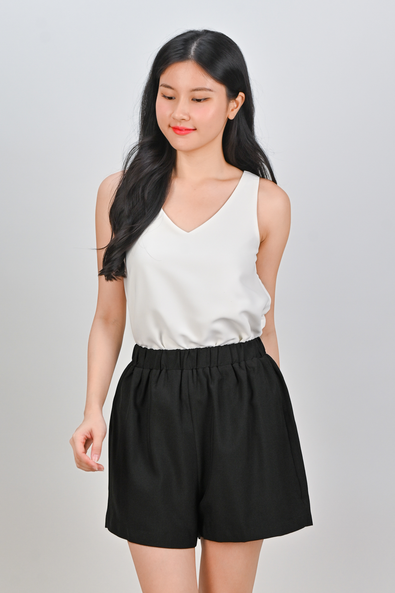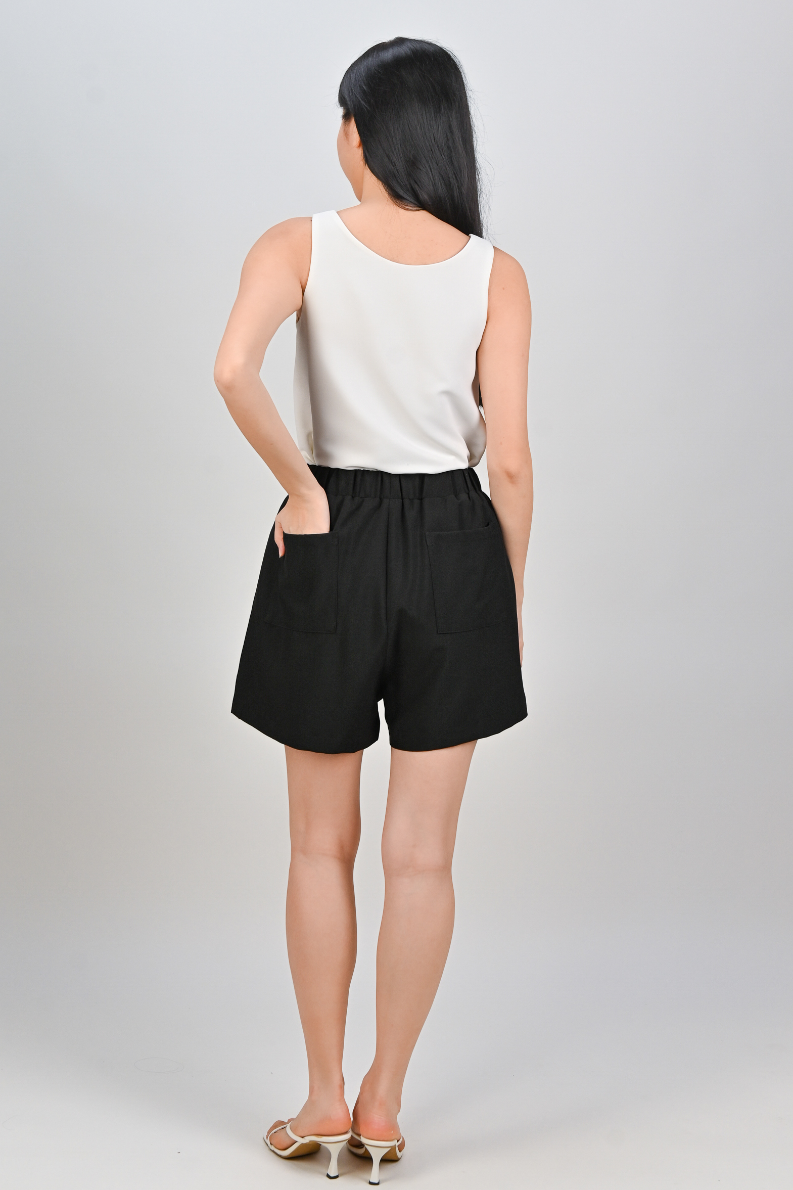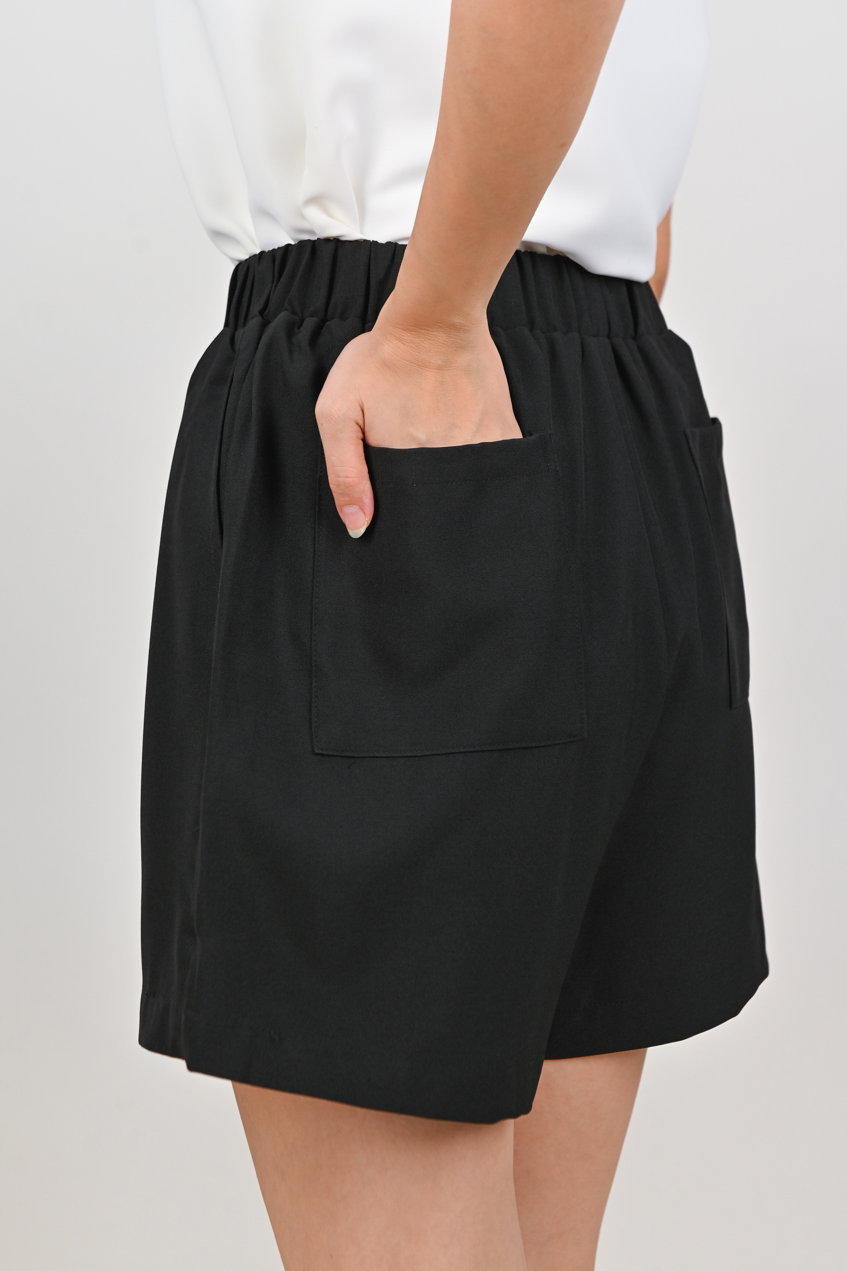 ZENYA ELASTIC-WAIST SHORTS IN BLACK