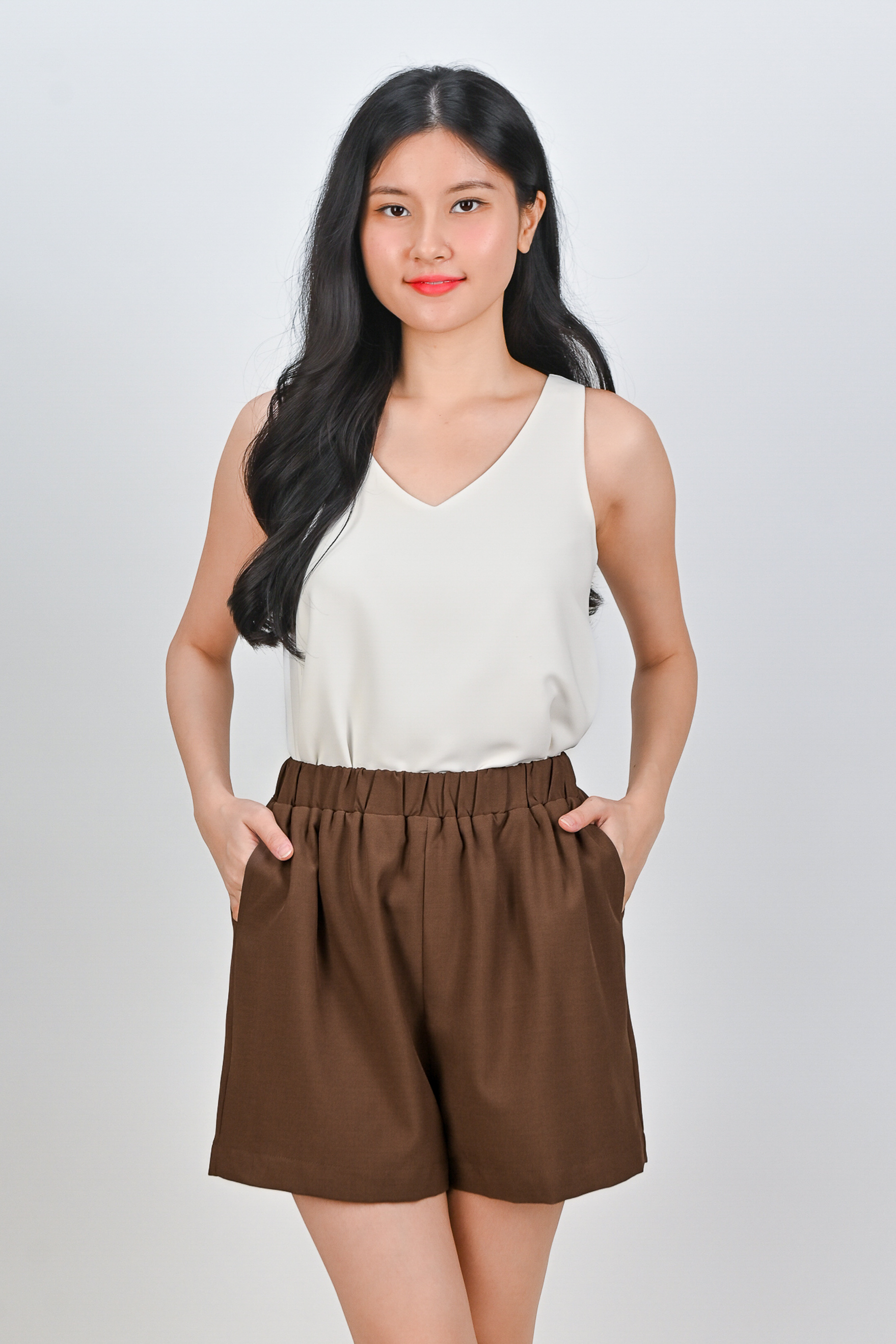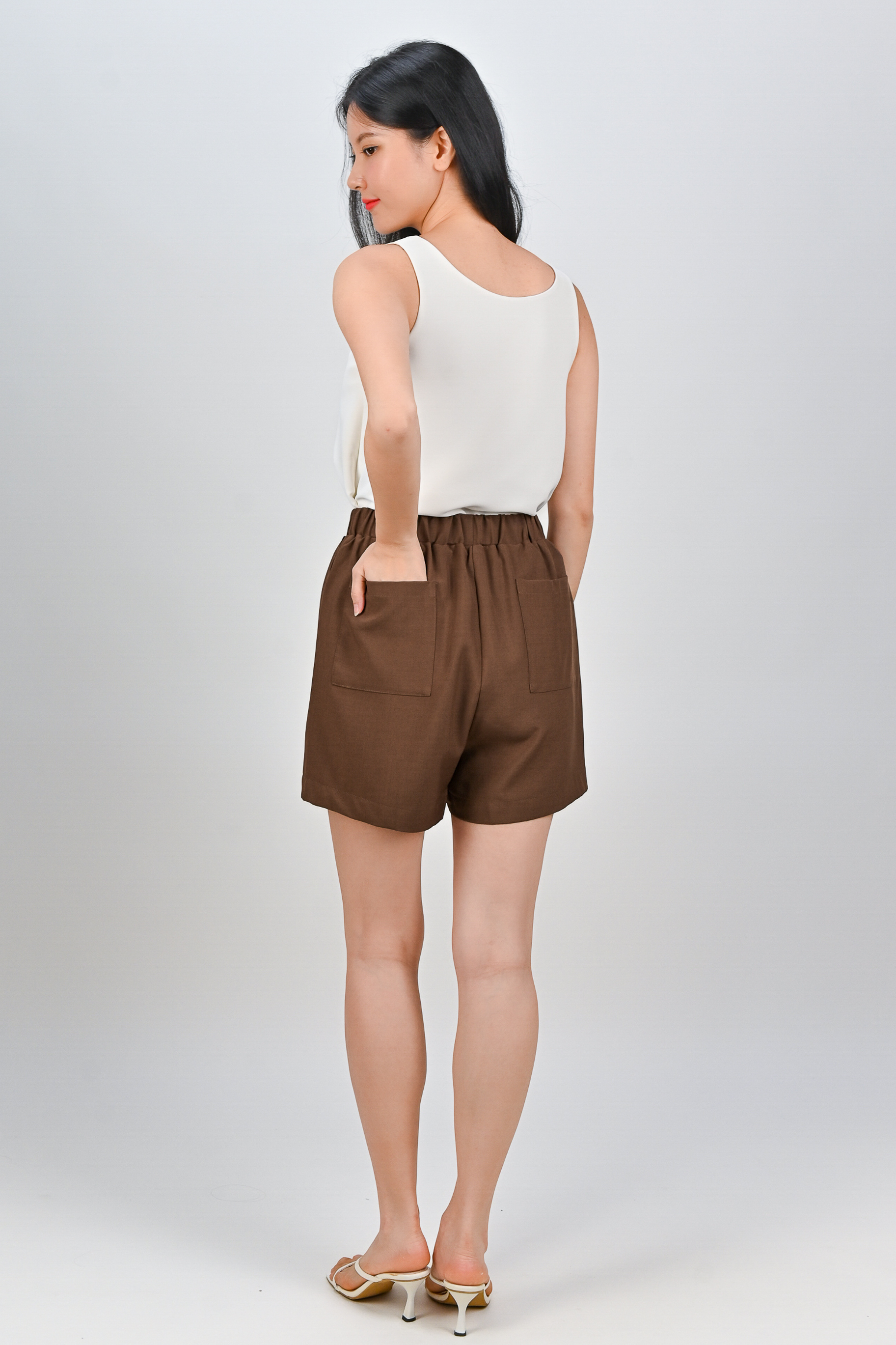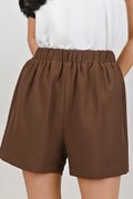ZENYA ELASTIC-WAIST SHORTS IN COCOA