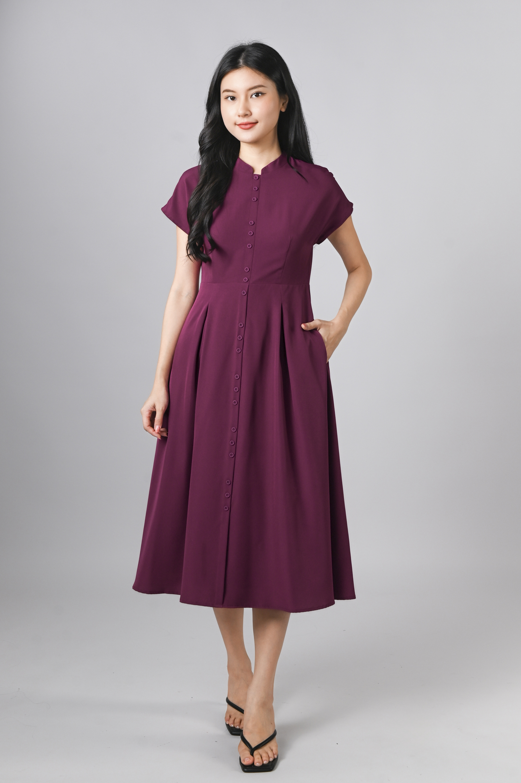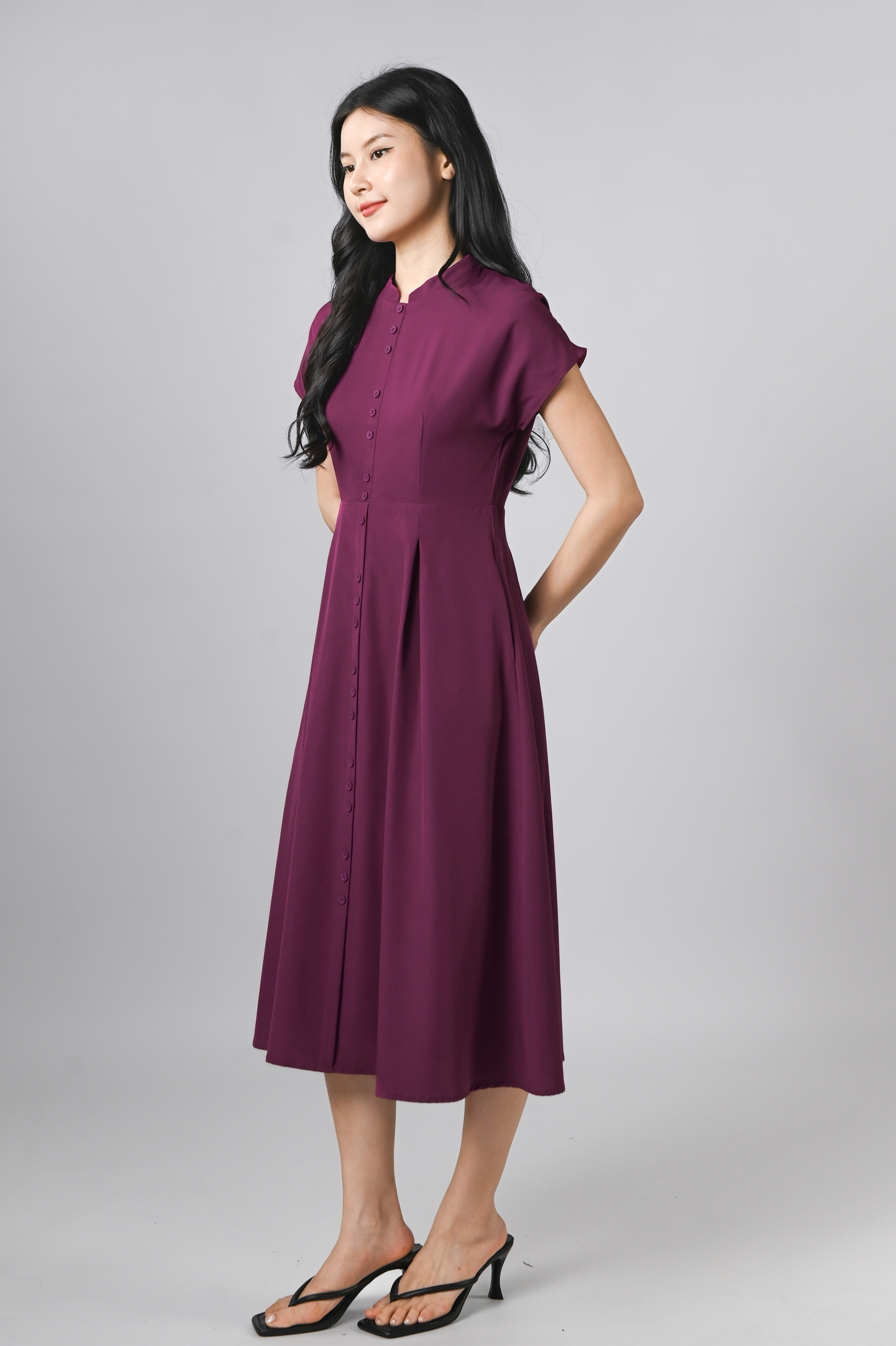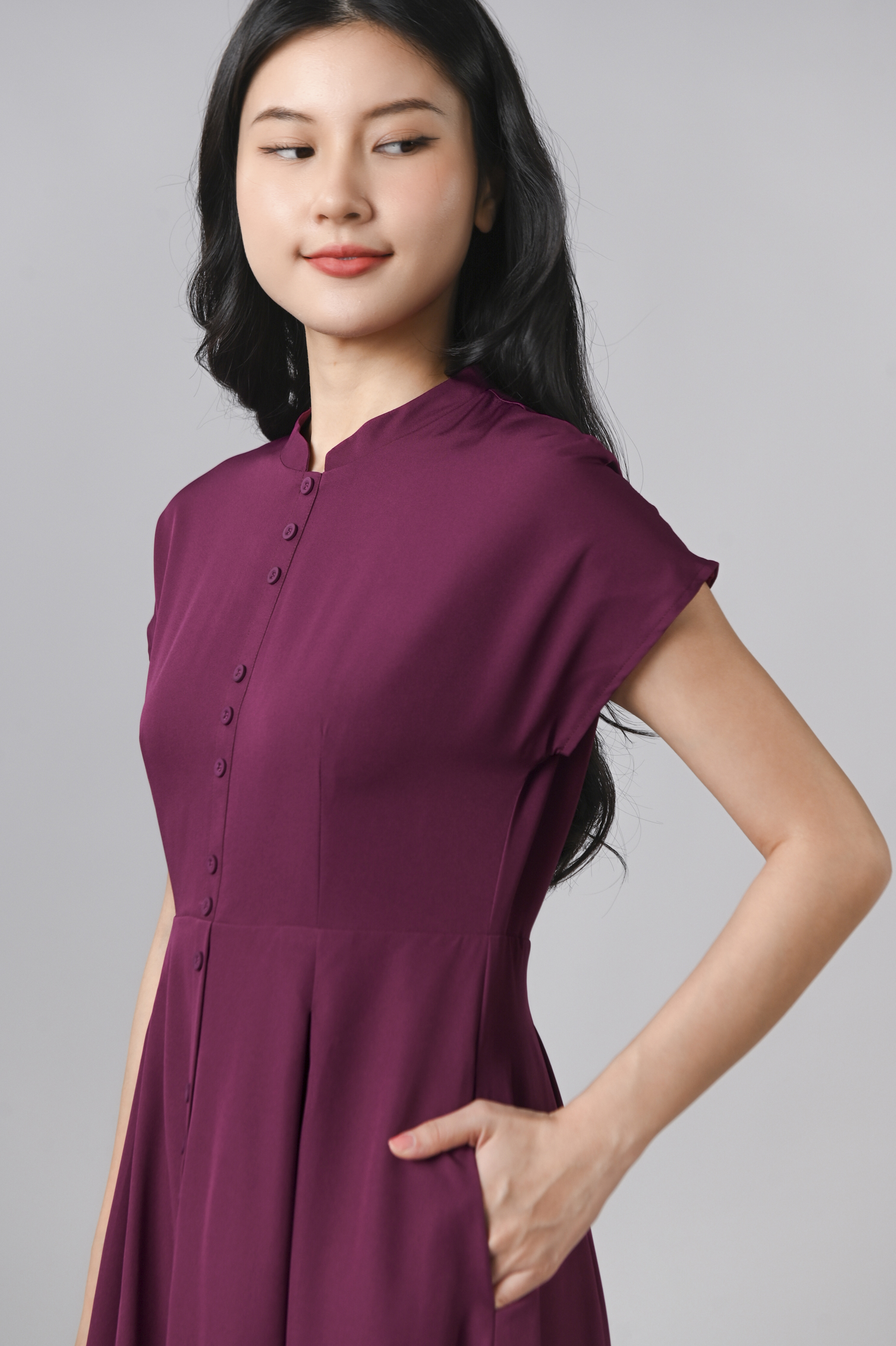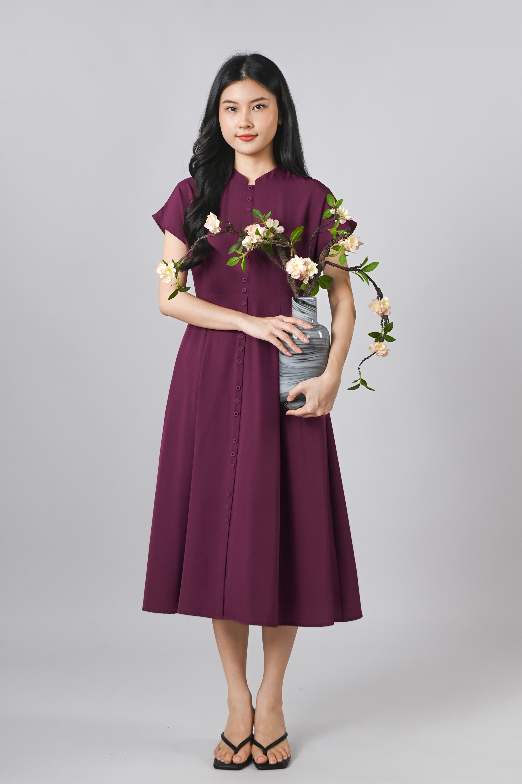 ZINING SLEEVED CHEONGSAM MIDI DRESS IN MAGENTA