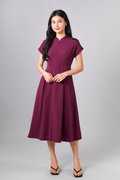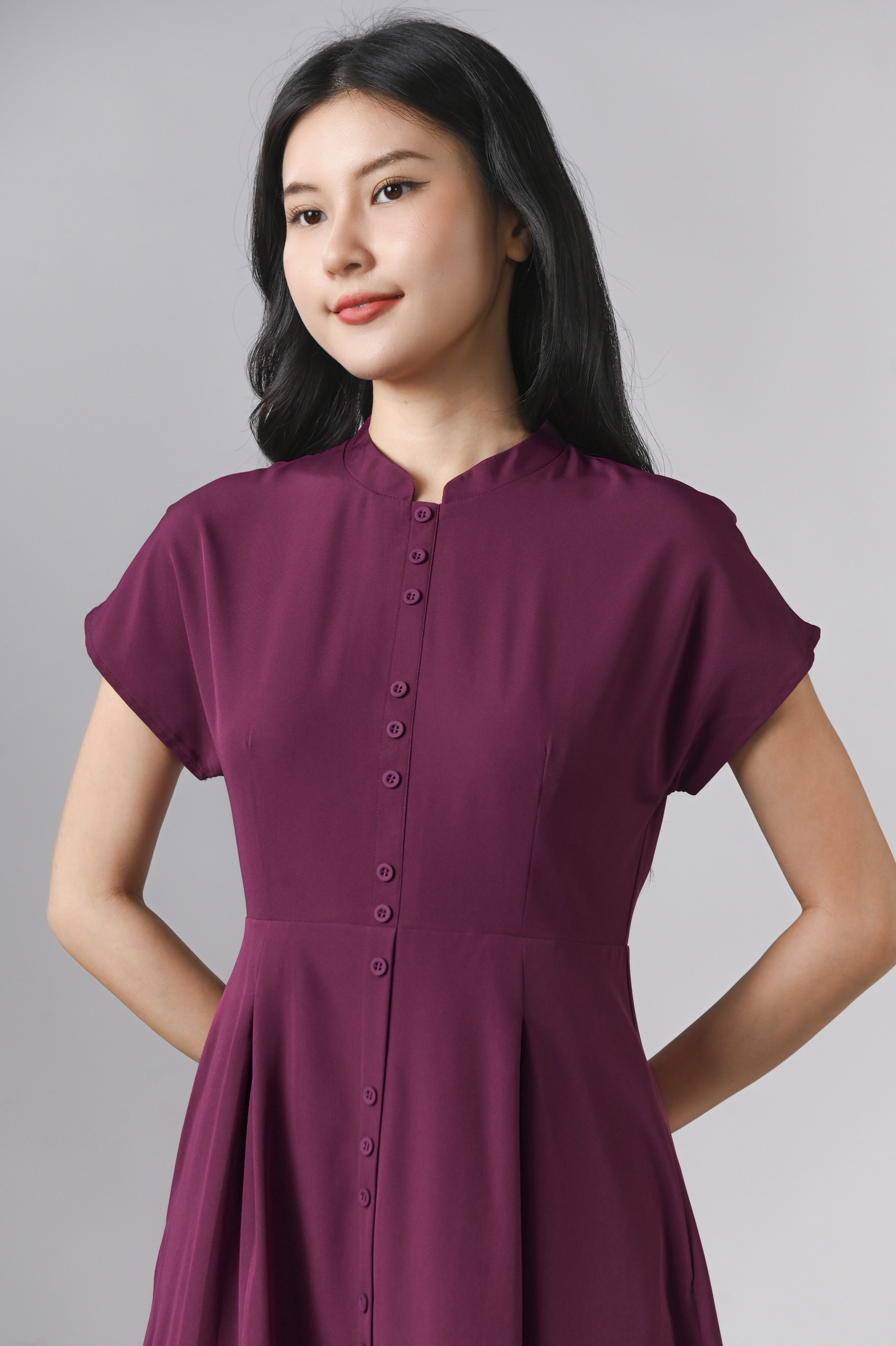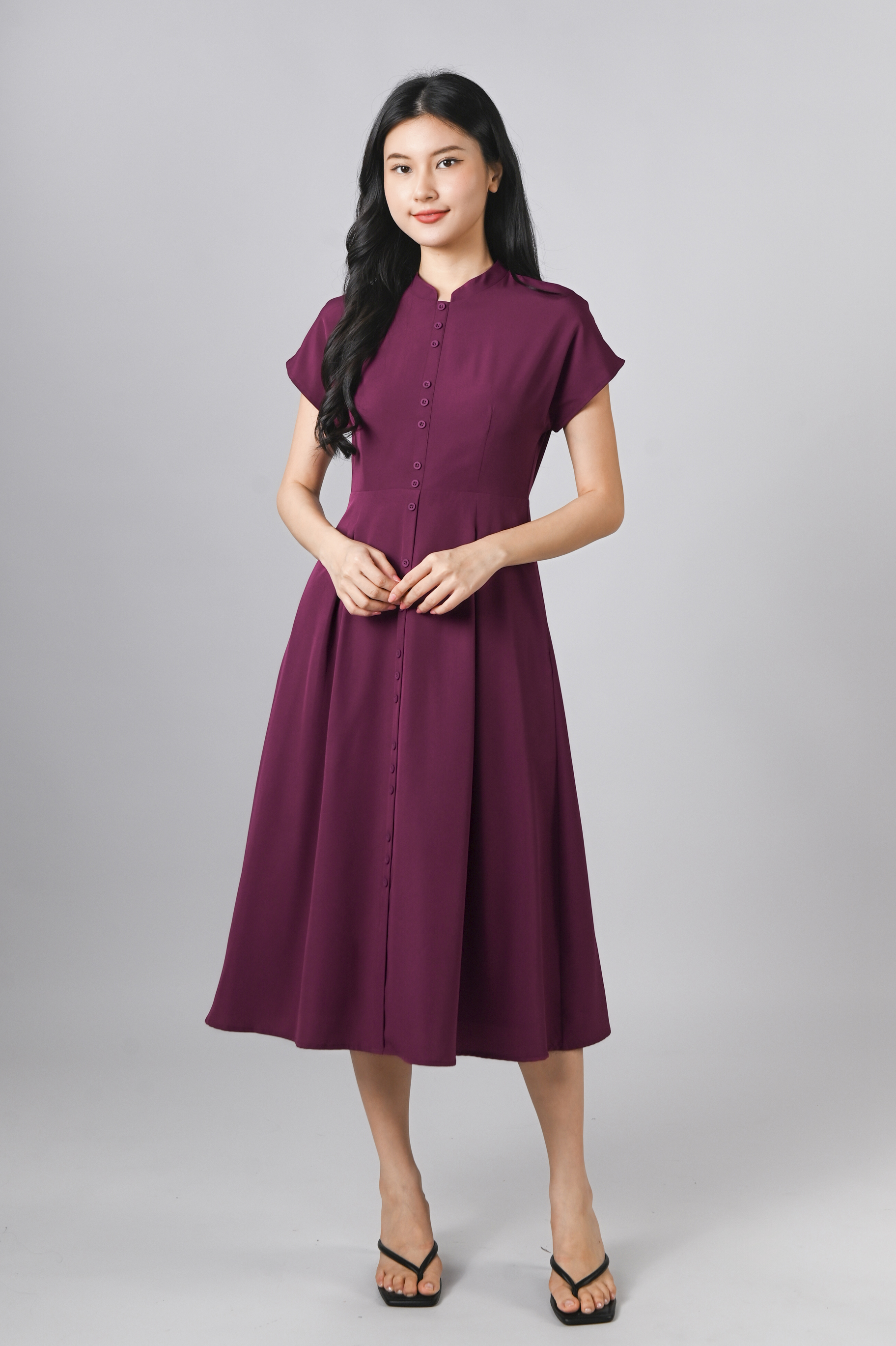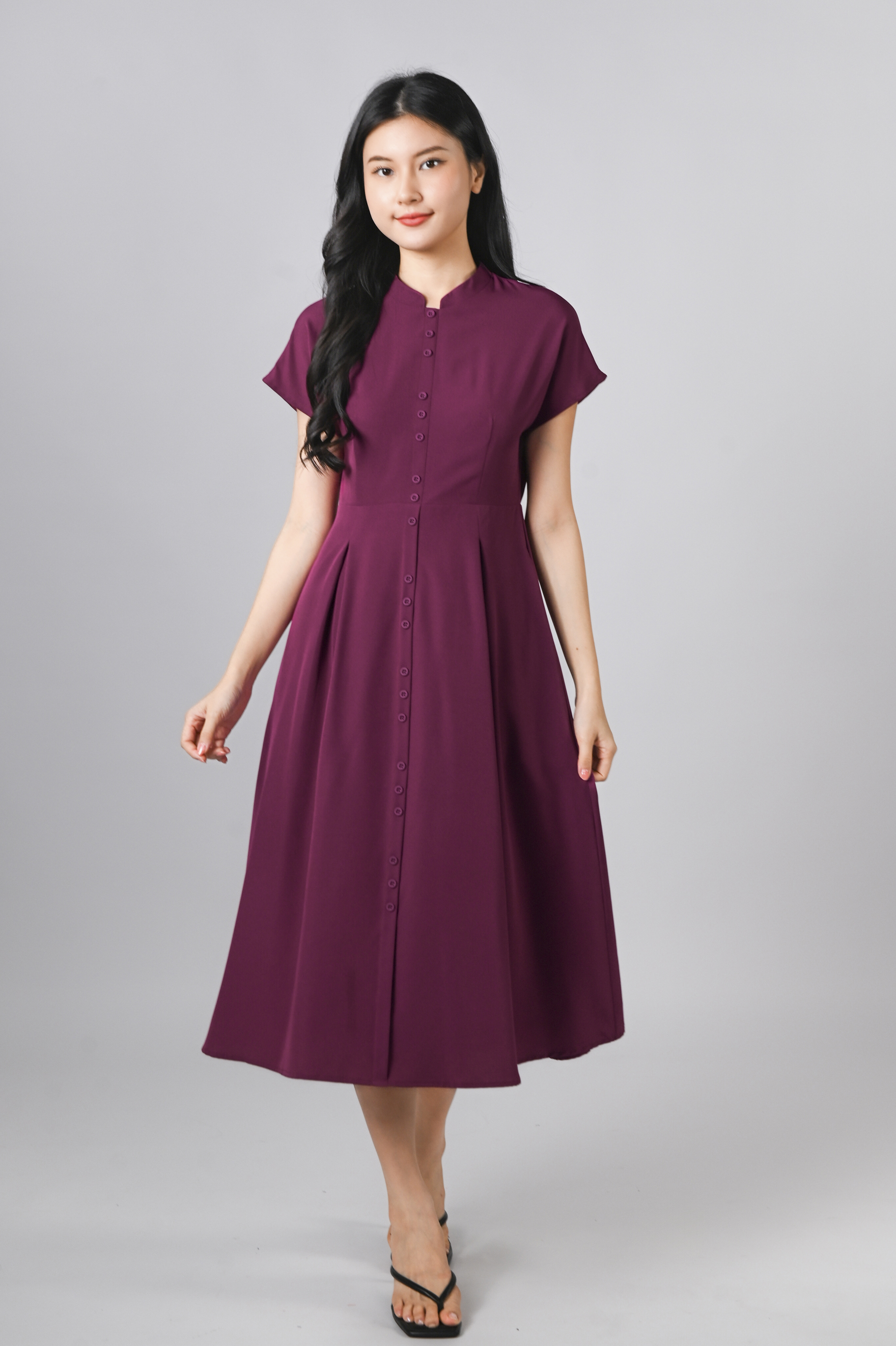 ZINING SLEEVED CHEONGSAM MIDI DRESS IN MAGENTA