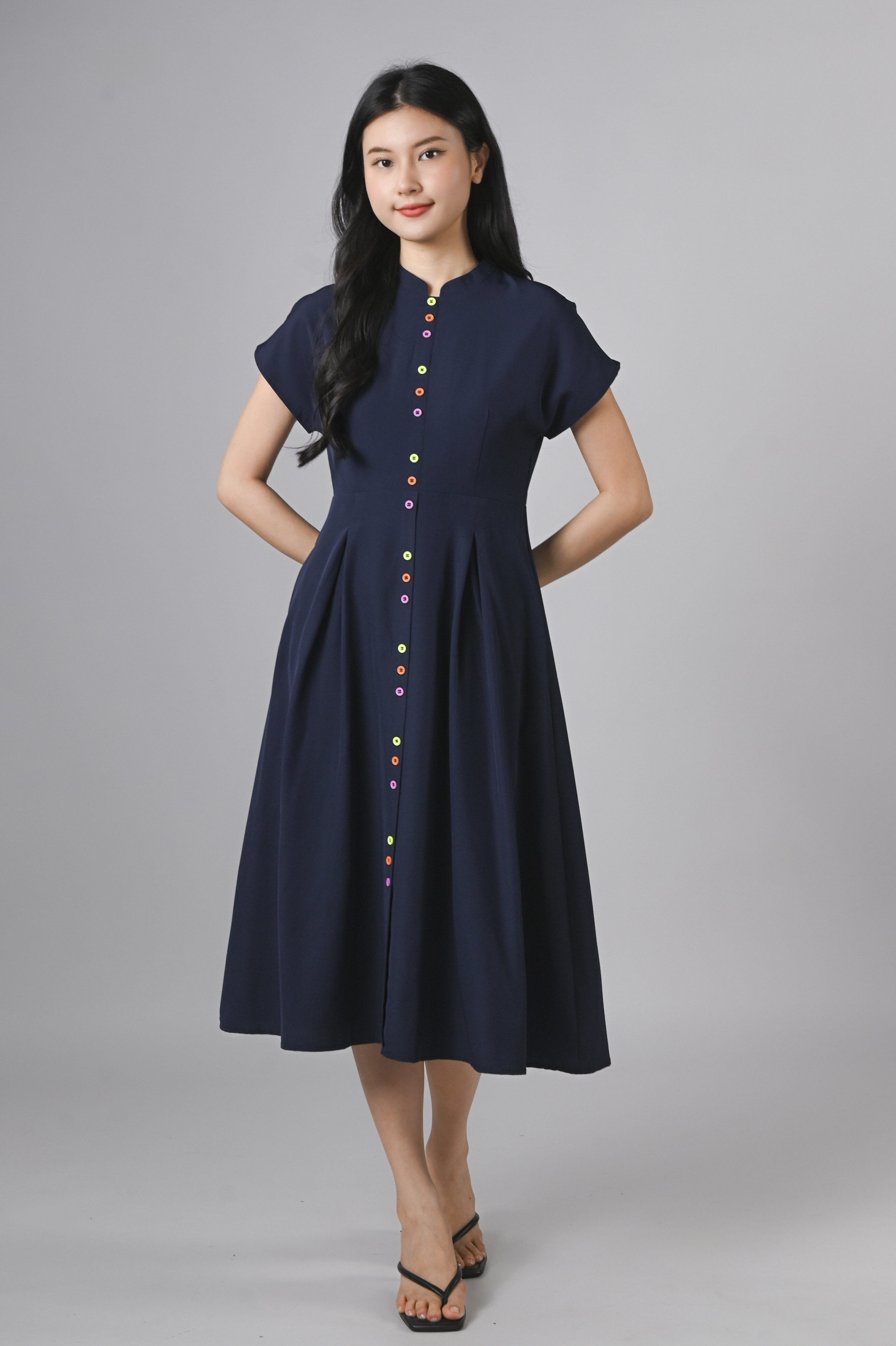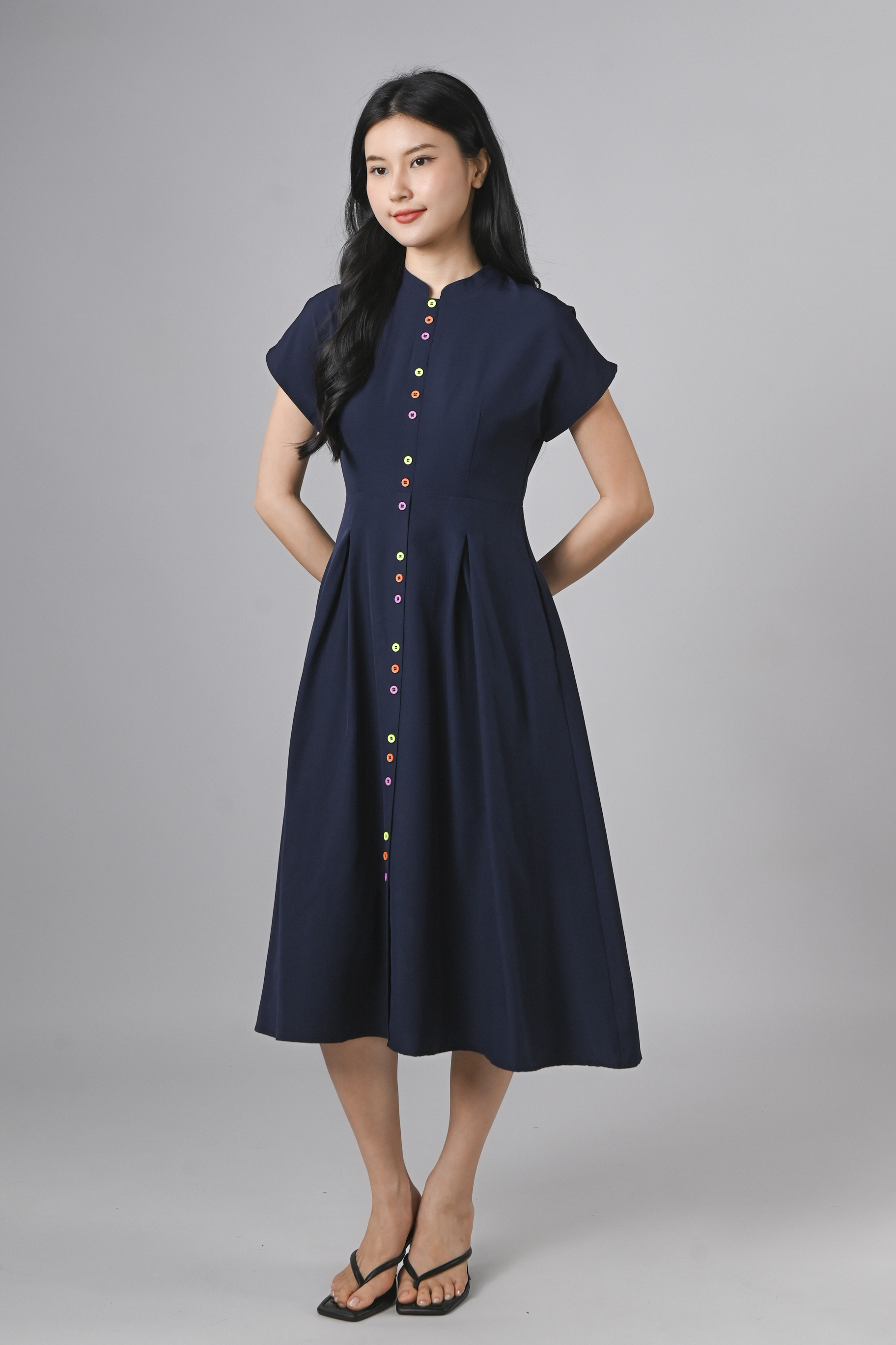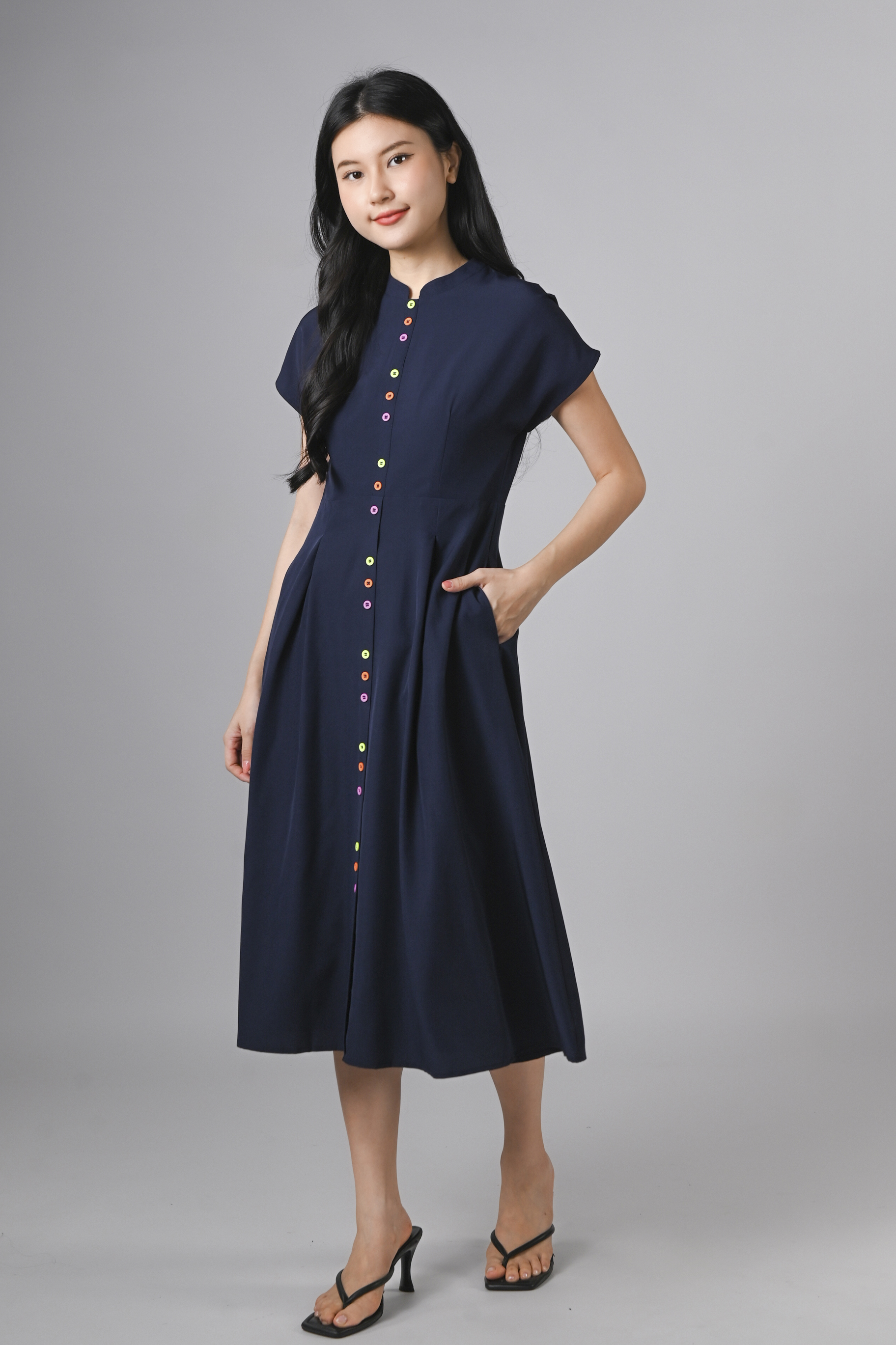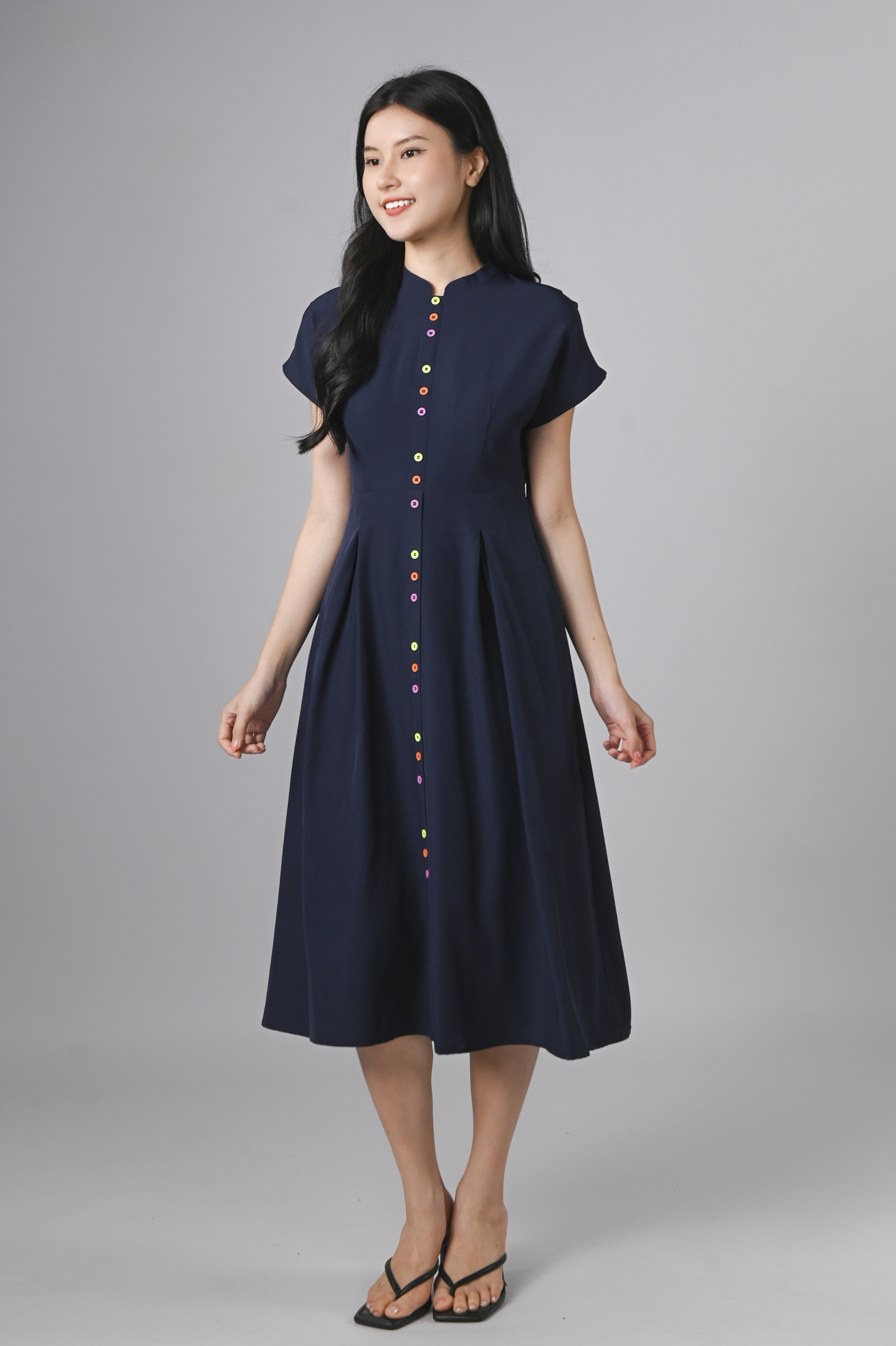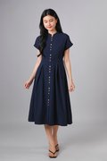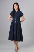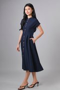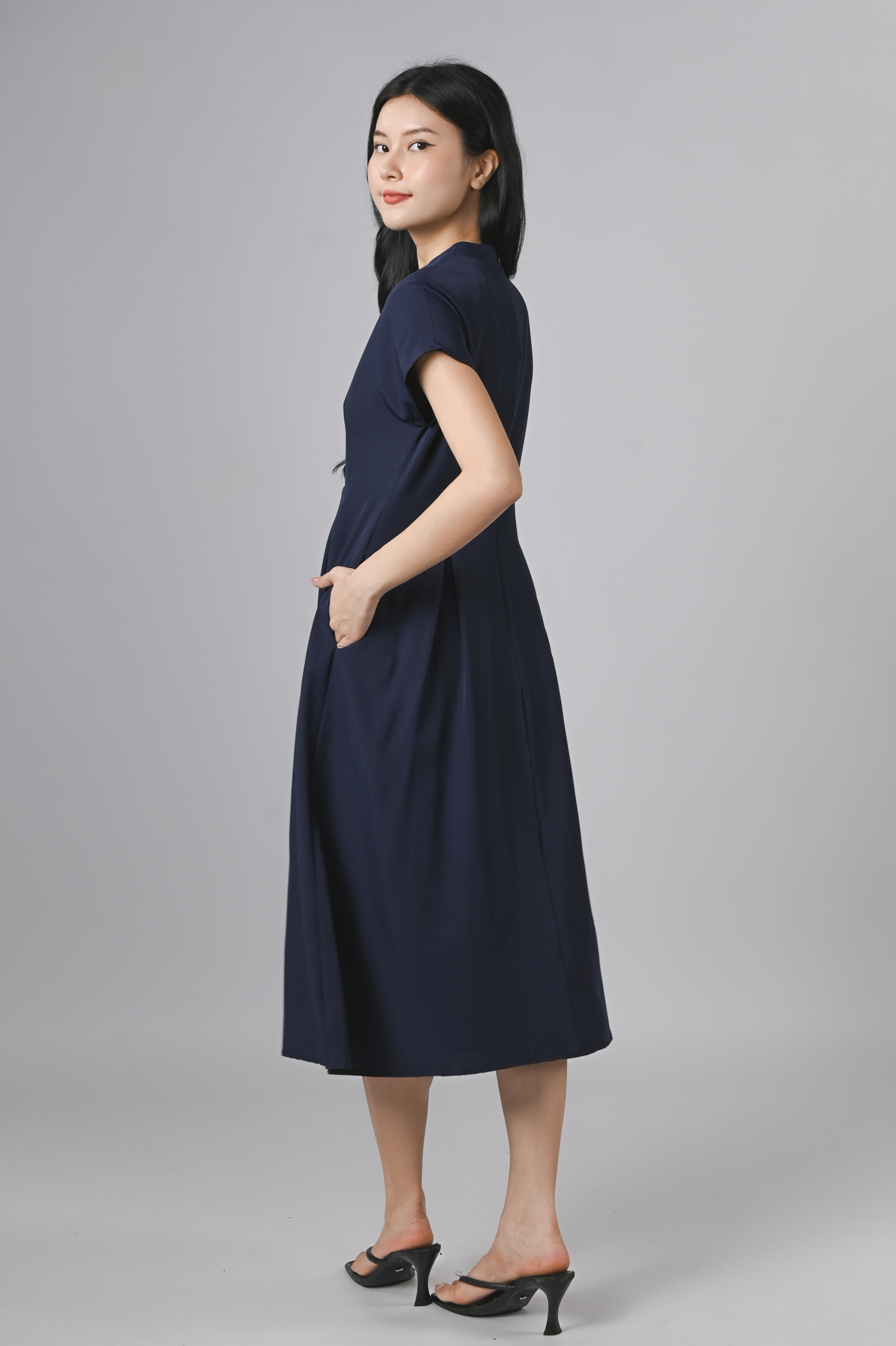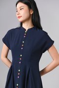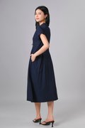 ZINING SLEEVED CHEONGSAM MIDI DRESS IN NAVY