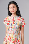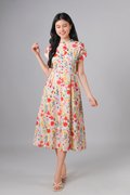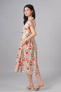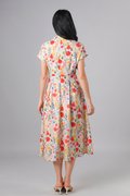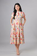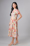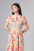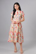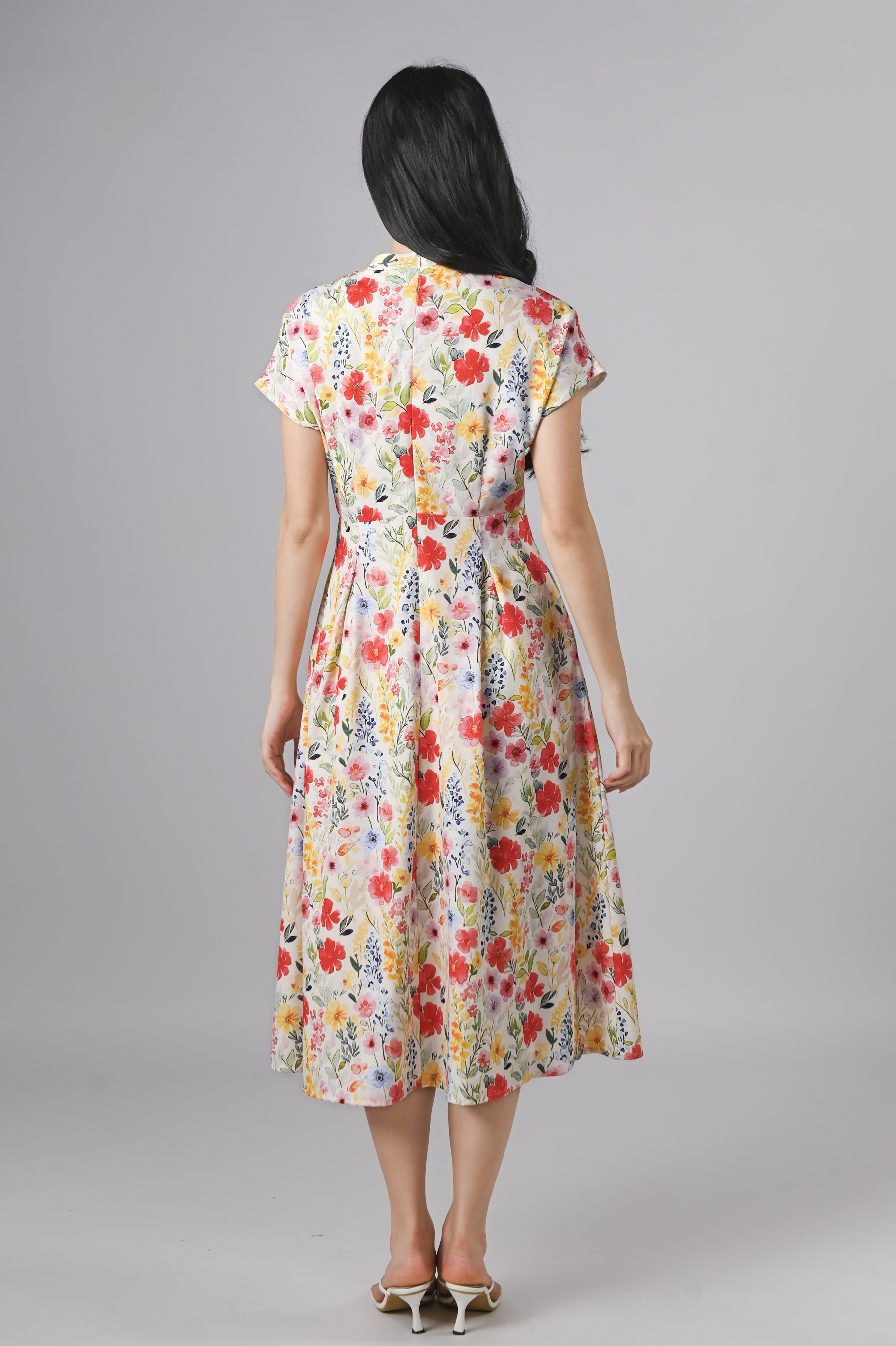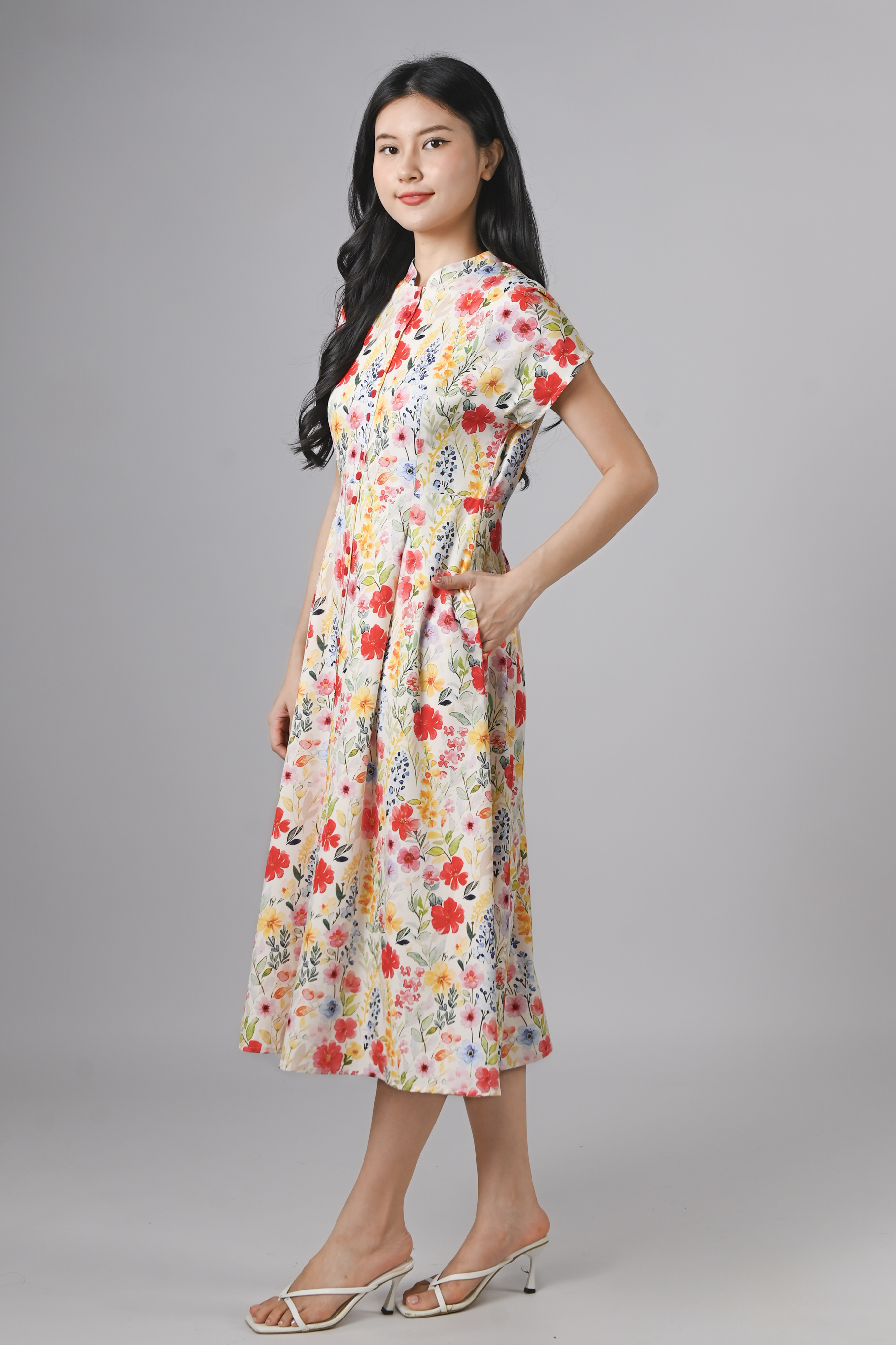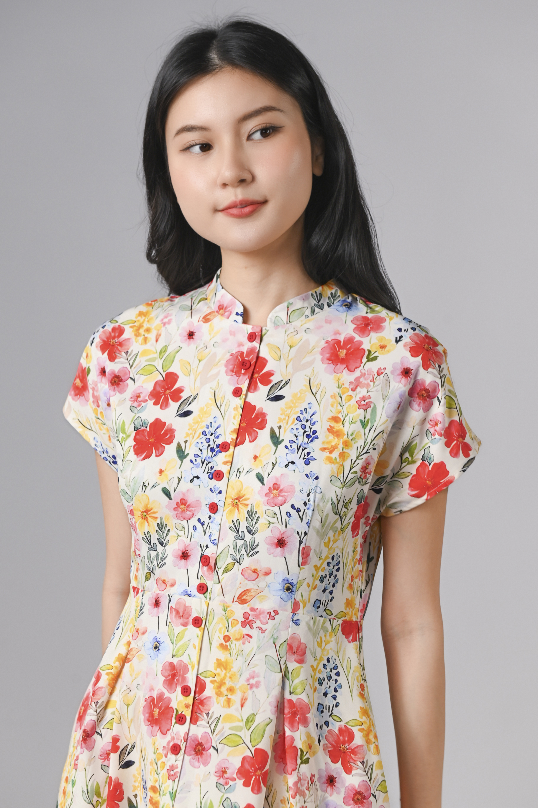 ZISHAN VIBRANT FLORAL SLEEVED CHEONGSAM MIDI DRESS