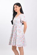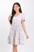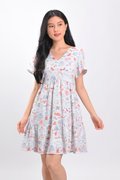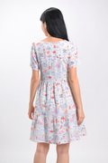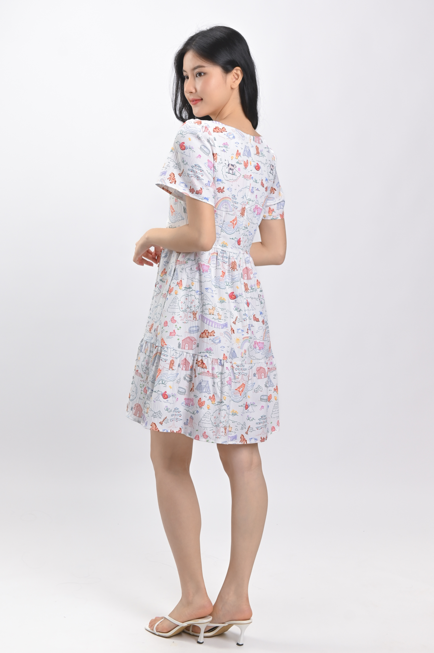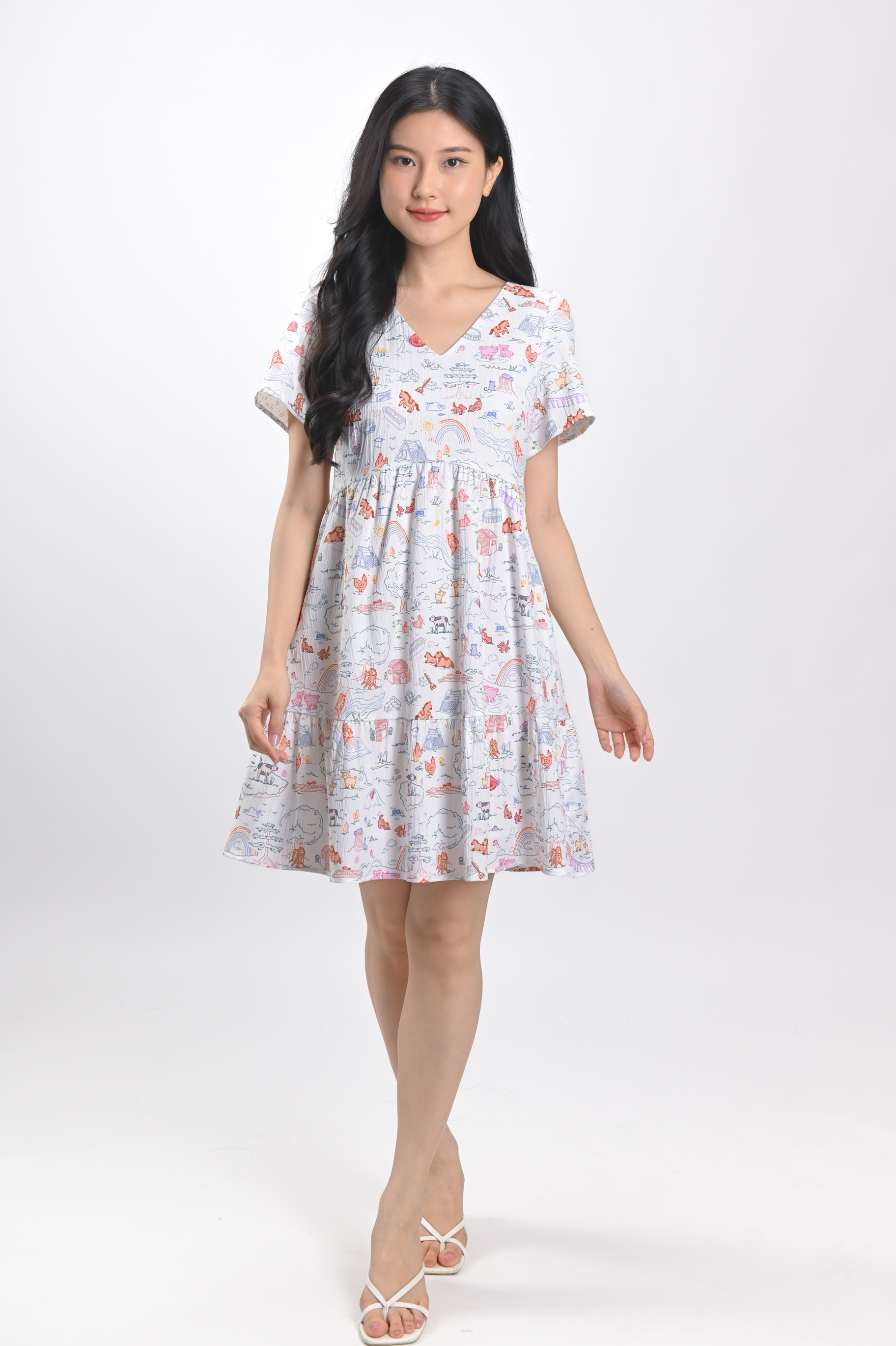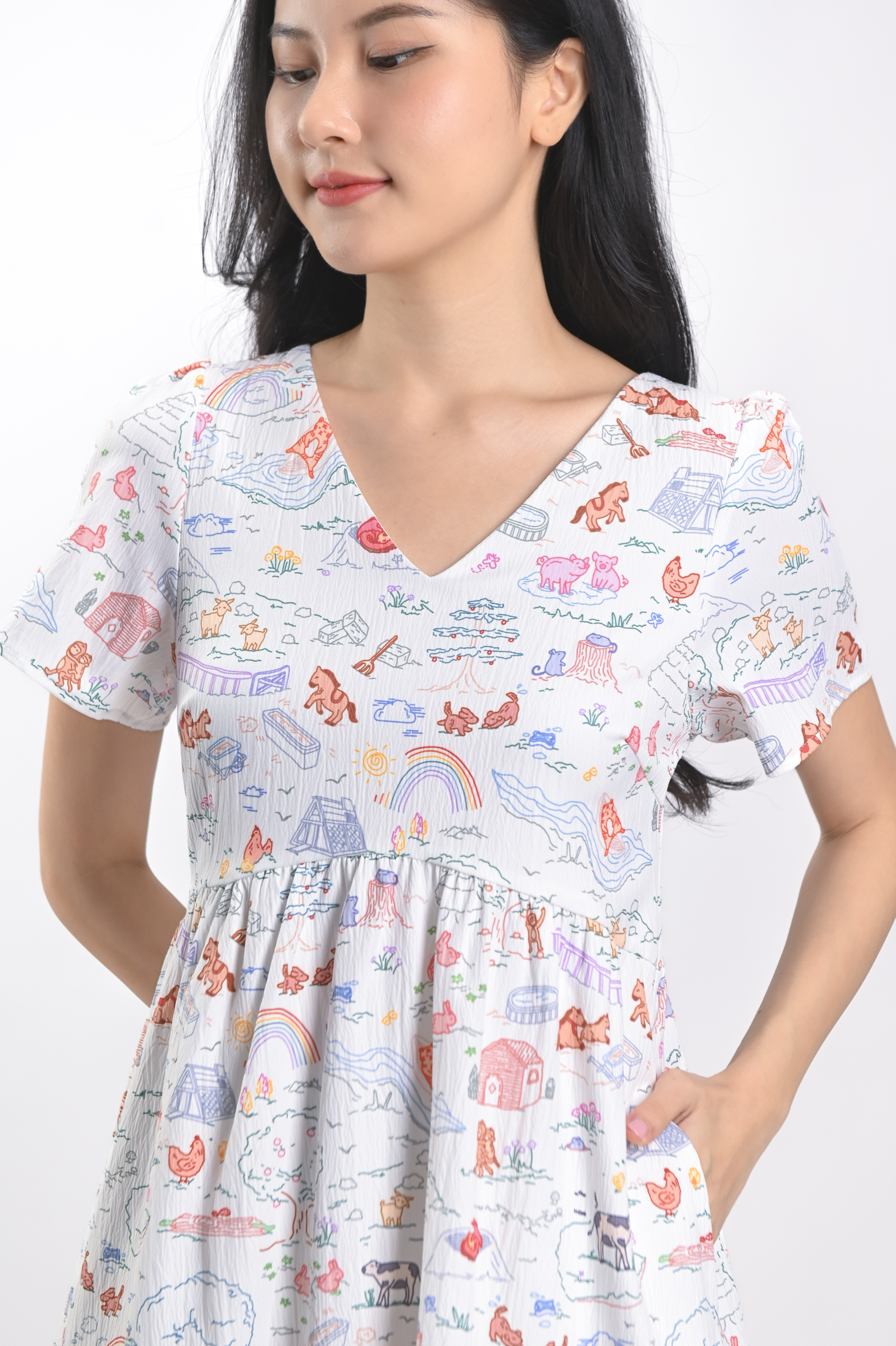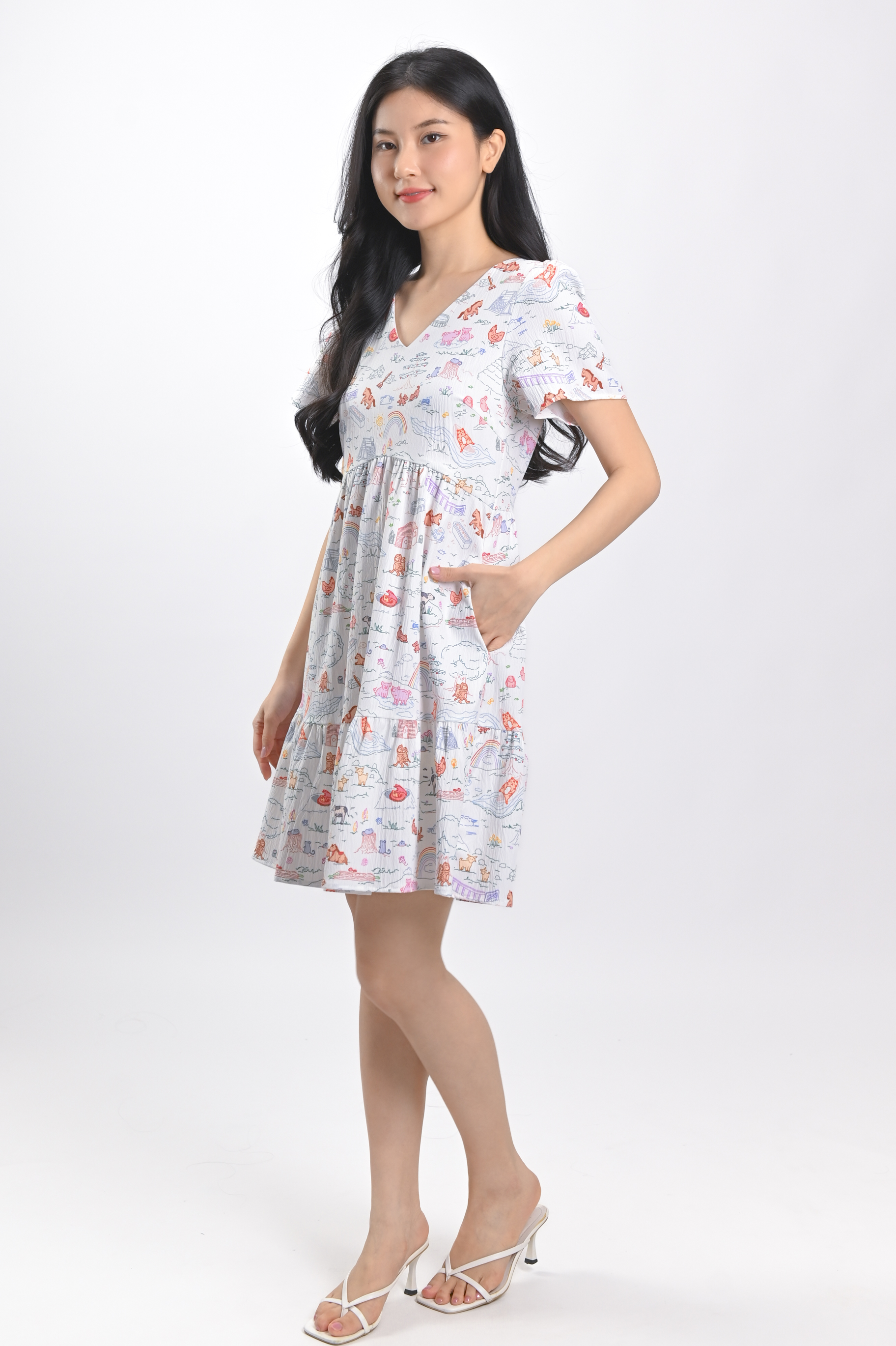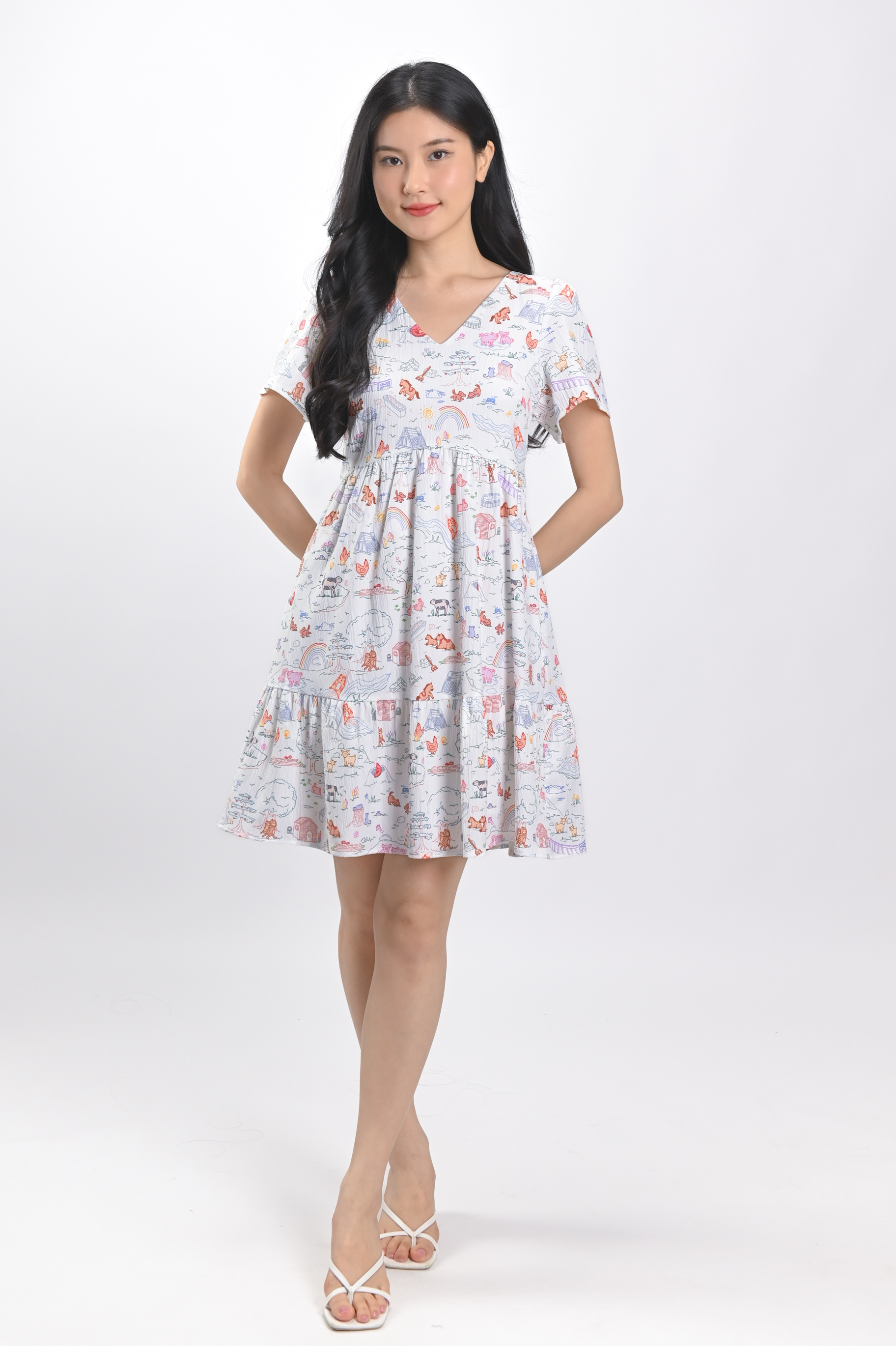 ZODIAC FARM V-NECK CURVED-WAIST FLOUNCE DRESS