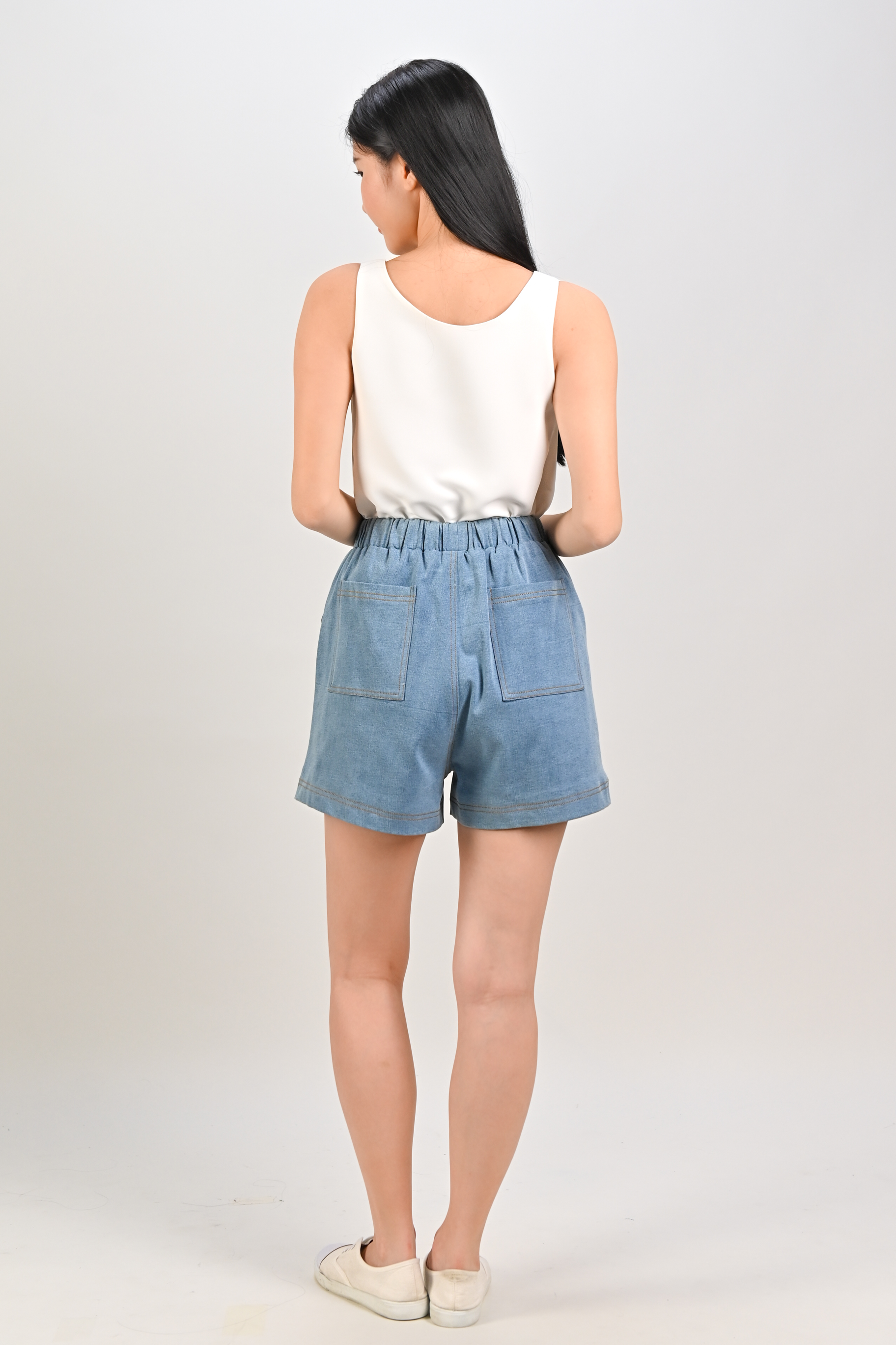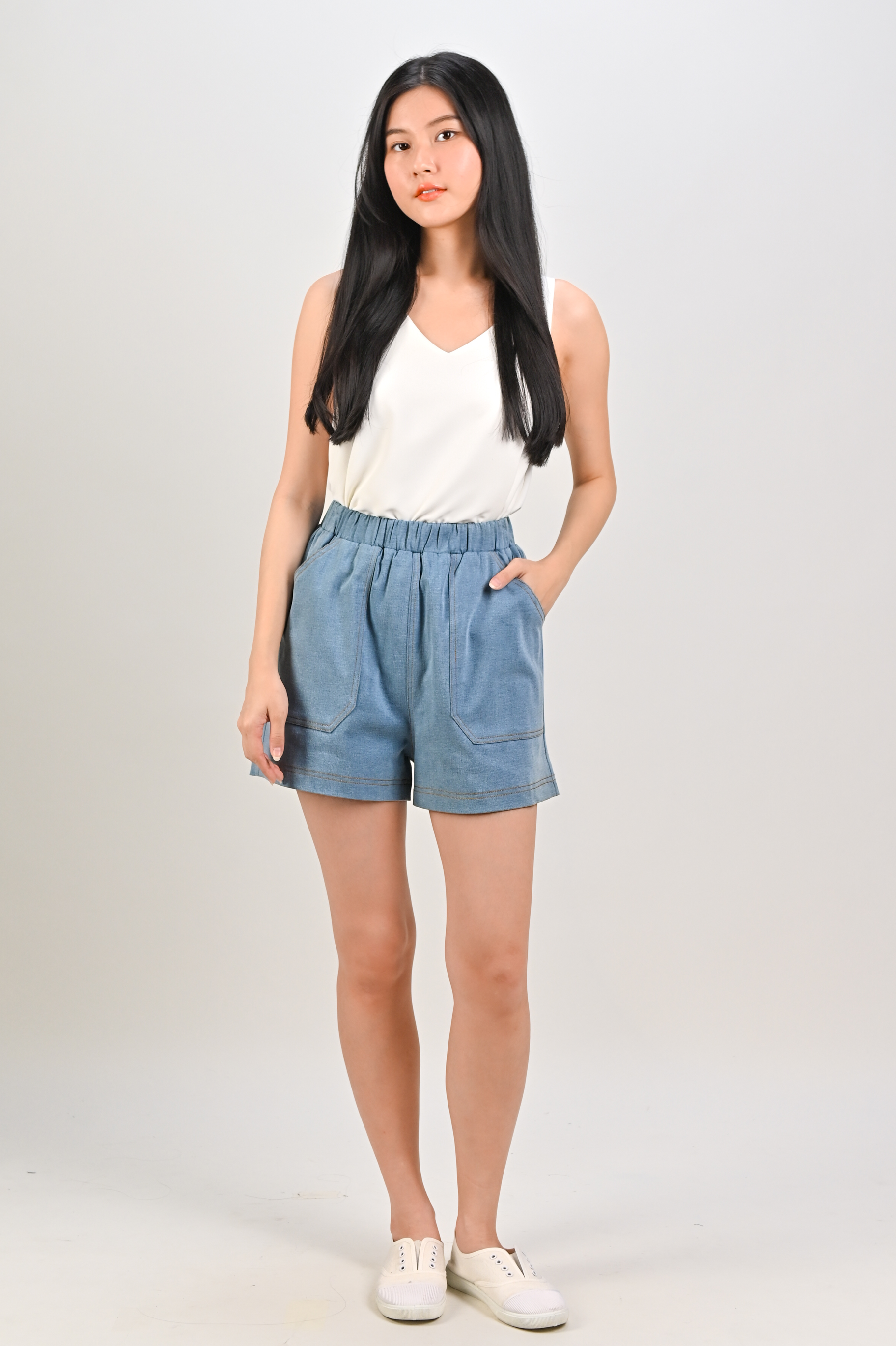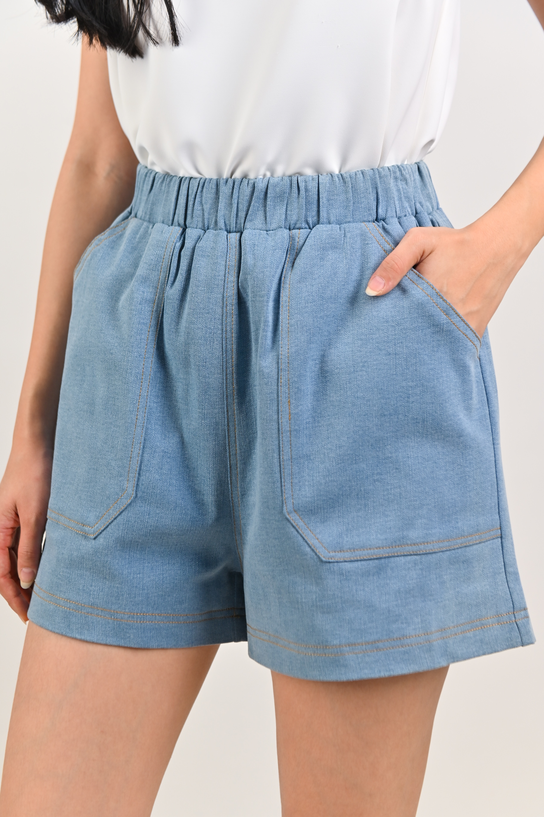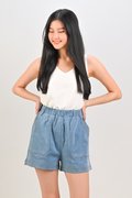 ZORANA ELASTIC-WAIST SHORTS IN LIGHT DENIM